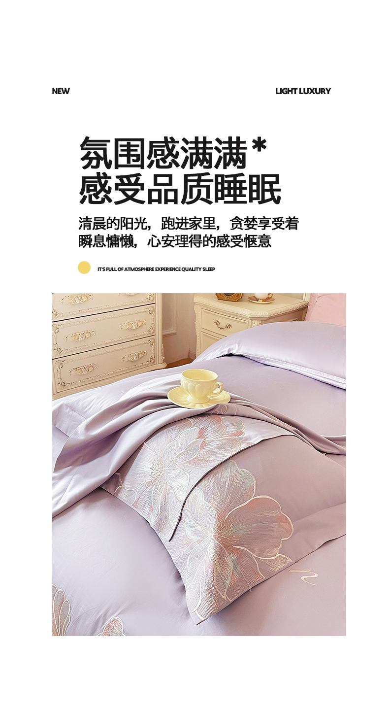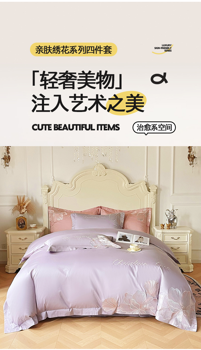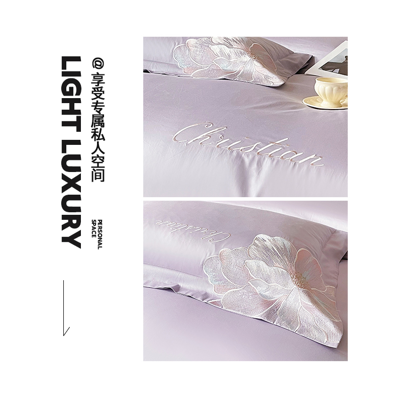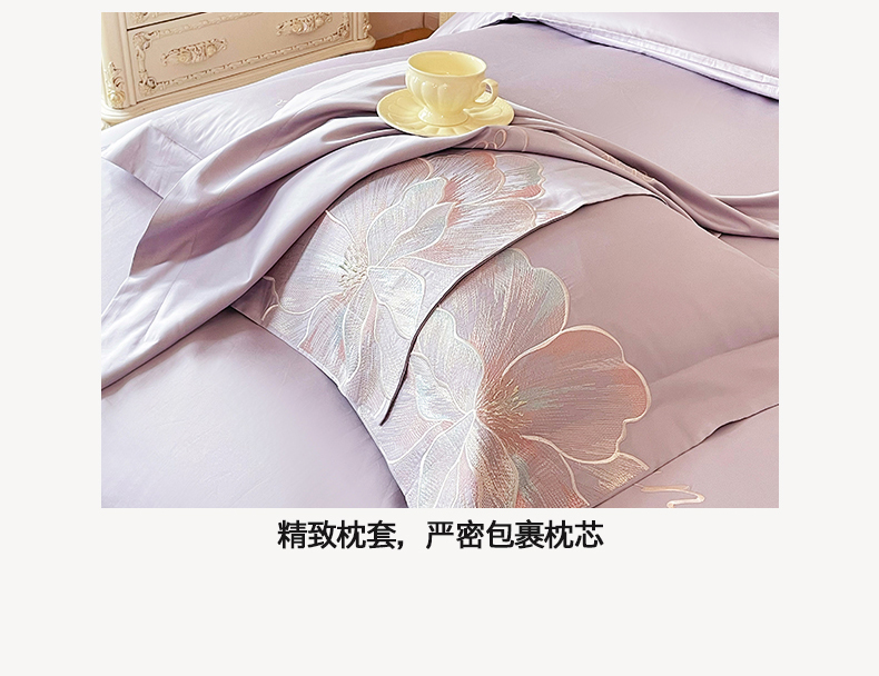 当前位置: 91家纺网 > 商品网购 > 床品套件 > 四件套 > 其它四件套 > 置顶家纺 2026新款亲肤绣花-COCO小姐亲肤棉系列四件套 COCO小姐-香芋紫
