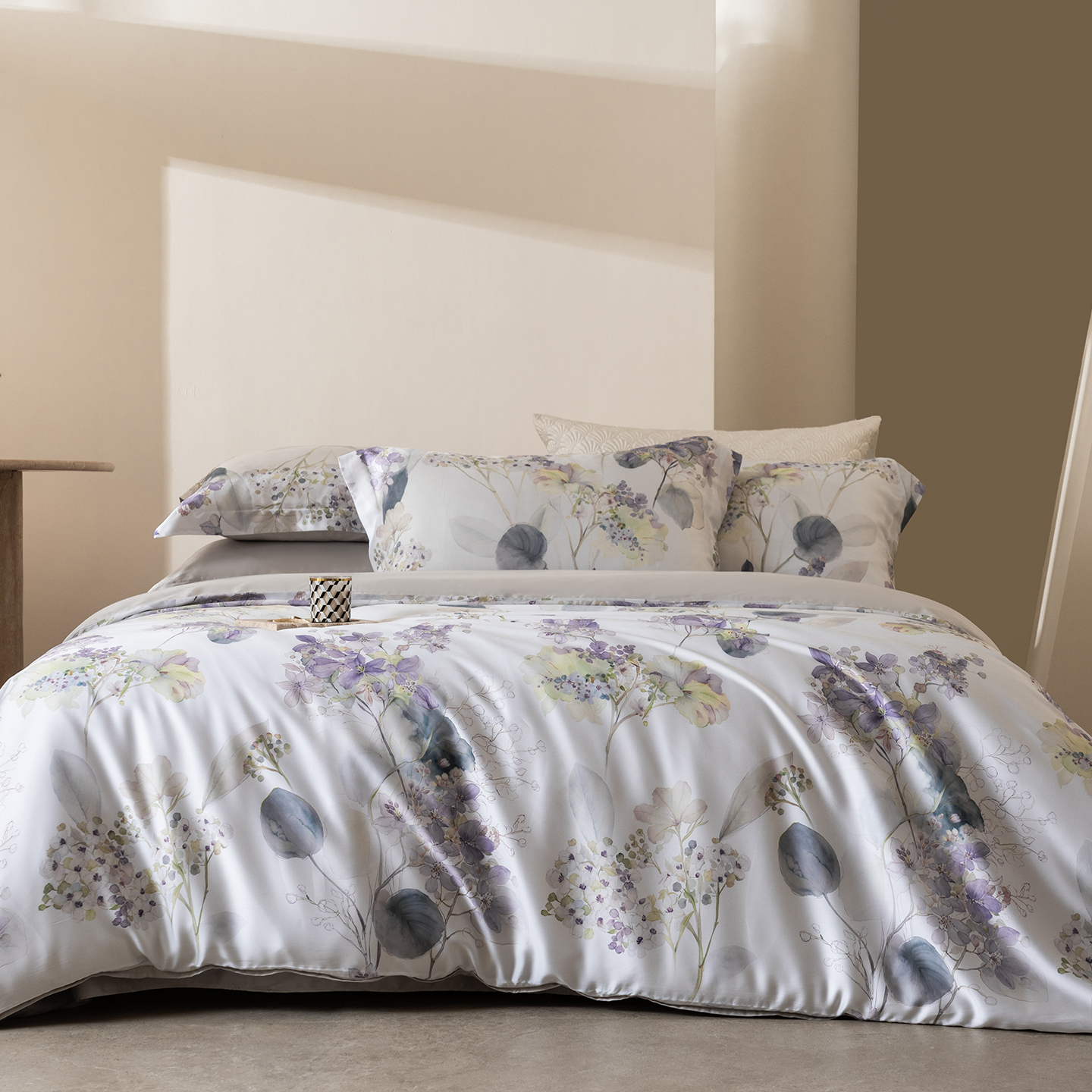 (总)佳汐蓝家纺 2025 春夏新品60支兰精天丝数码印花四件套-小苍兰花语,白,粉,蓝