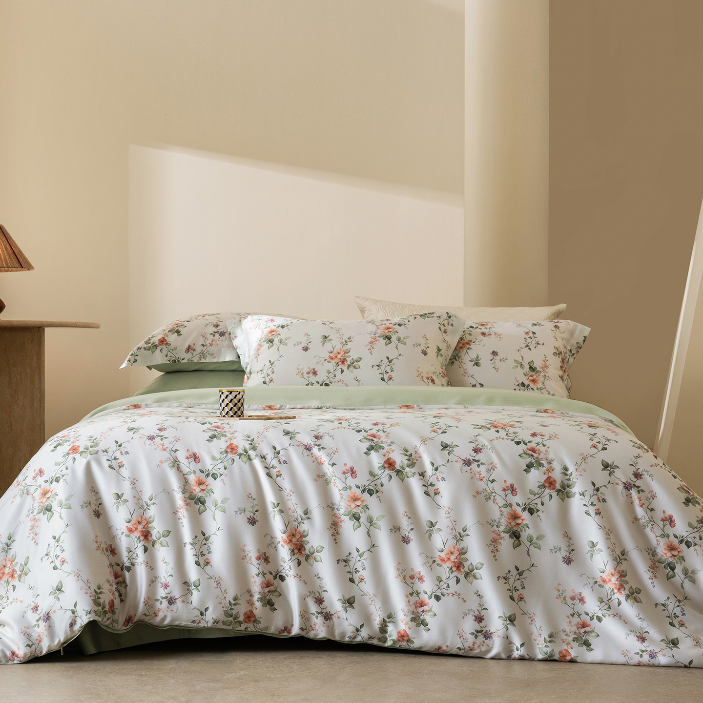 (总)佳汐蓝家纺 2026新款春夏棉麻新品印花+流光纱四件套-春缇玫瑰,春缇玫瑰