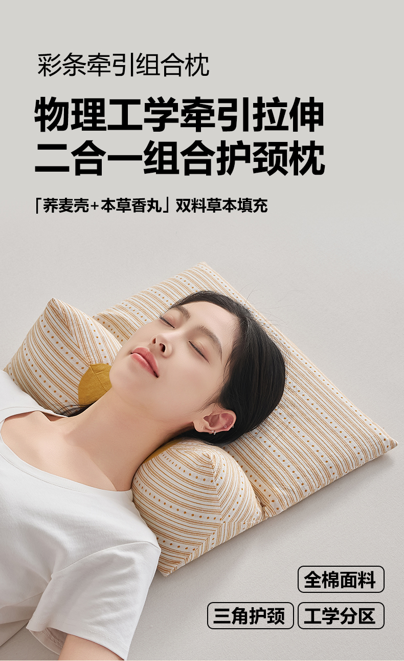 当前位置: 91家纺网 > 商品网购 > 枕头/枕芯/保健枕/颈椎枕 > 枕头枕芯 > 乐可 2026新款彩条牵引组合枕荞麦枕香丸枕枕头枕芯 彩条牵引组合枕-香丸款-棕
