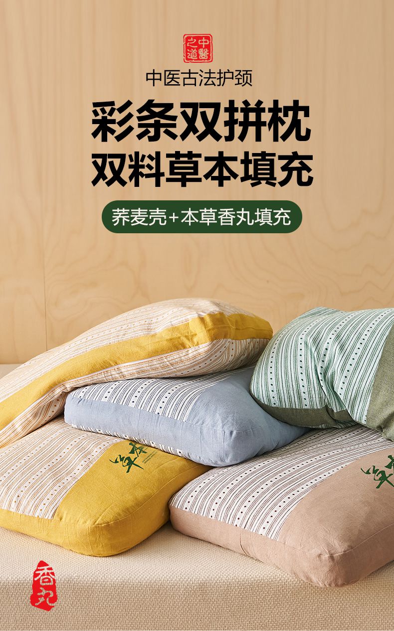 当前位置: 91家纺网 > 商品网购 > 枕头/枕芯/保健枕/颈椎枕 > 枕头枕芯 > 乐可 2026新款彩条双拼枕荞麦枕香丸枕枕头枕芯 彩条双拼枕-香丸款-棕