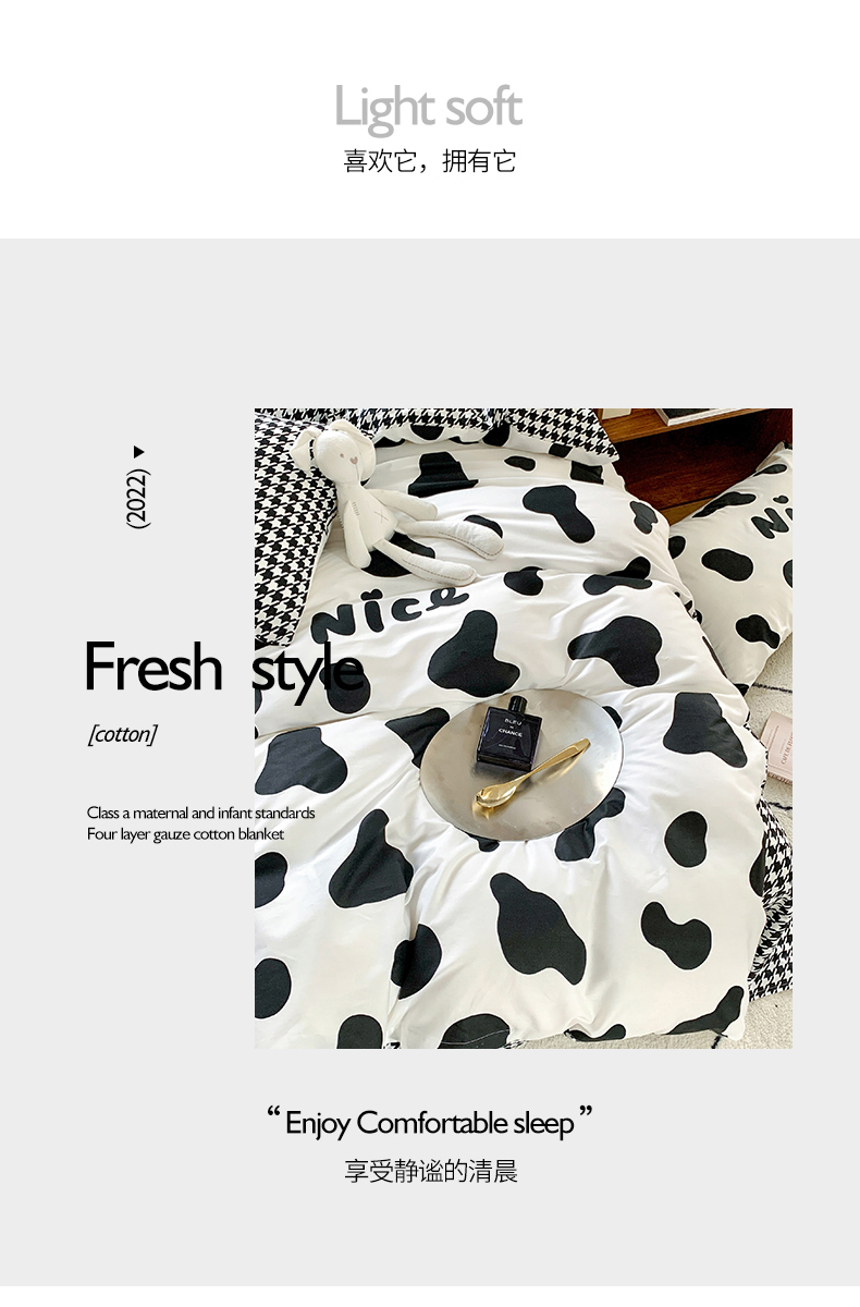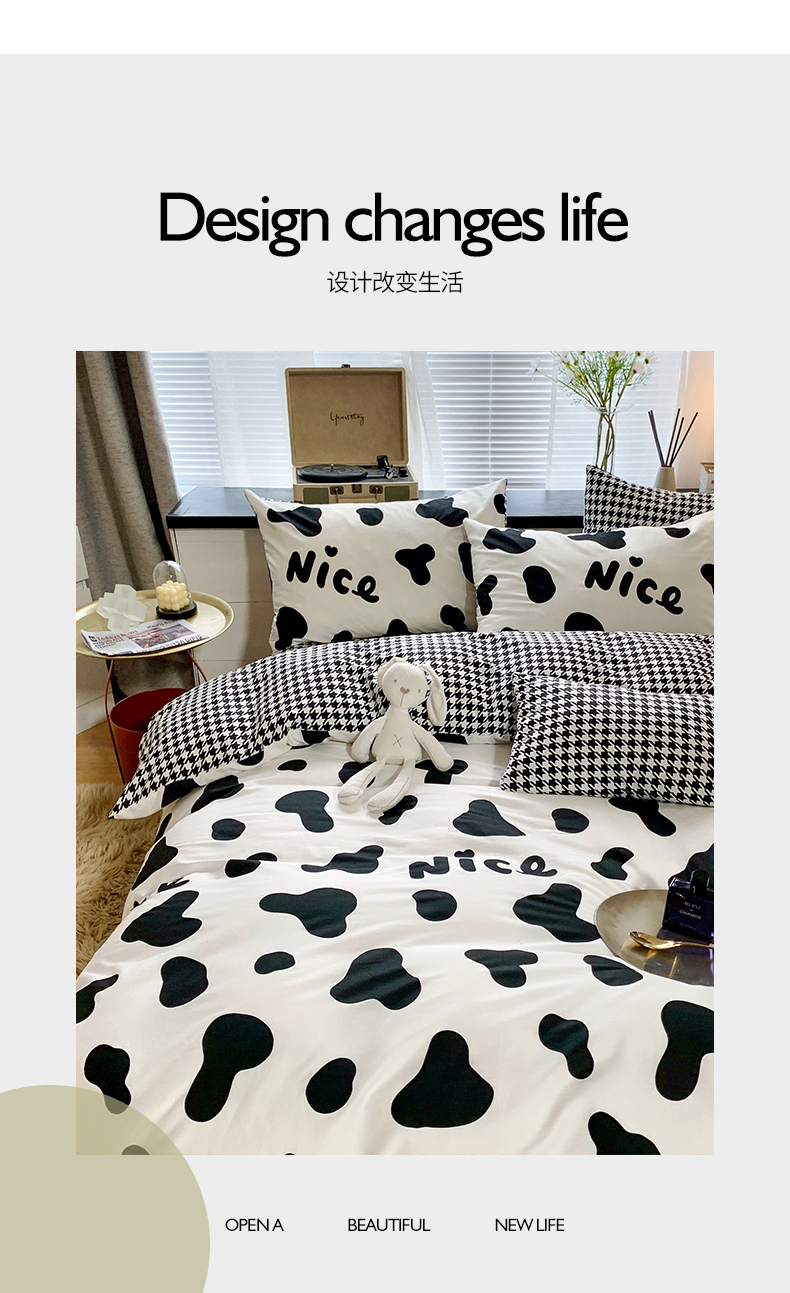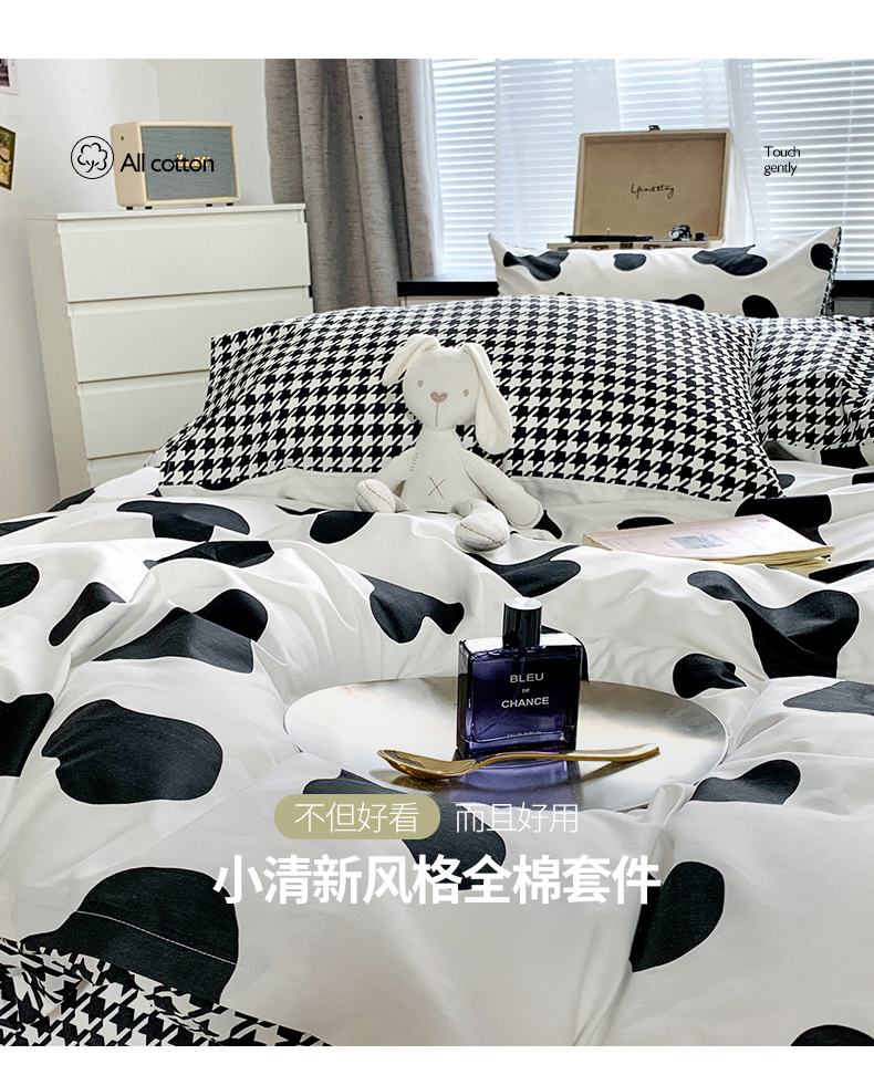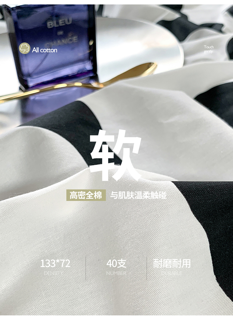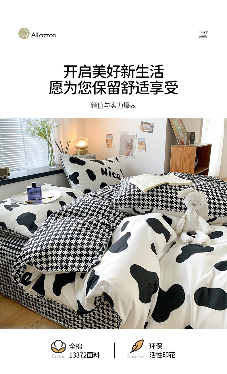 当前位置: 91家纺网 > 商品网购 > 床品套件 > 四件套 > 全棉普通四件套 > 朵希曼 2026新款全棉北欧黑白极简系列四件套 黑糖牛奶