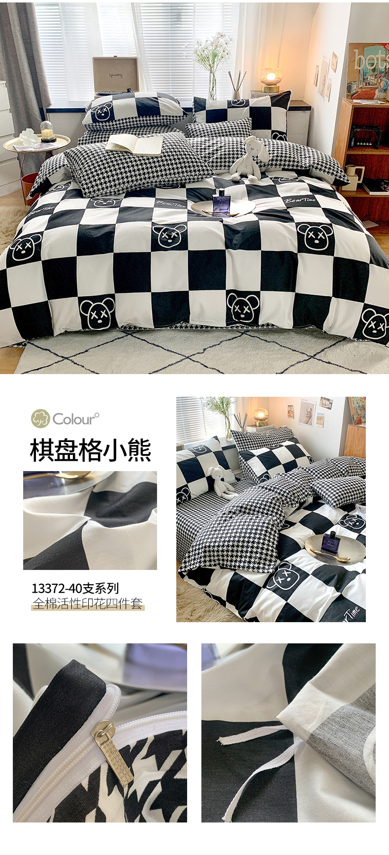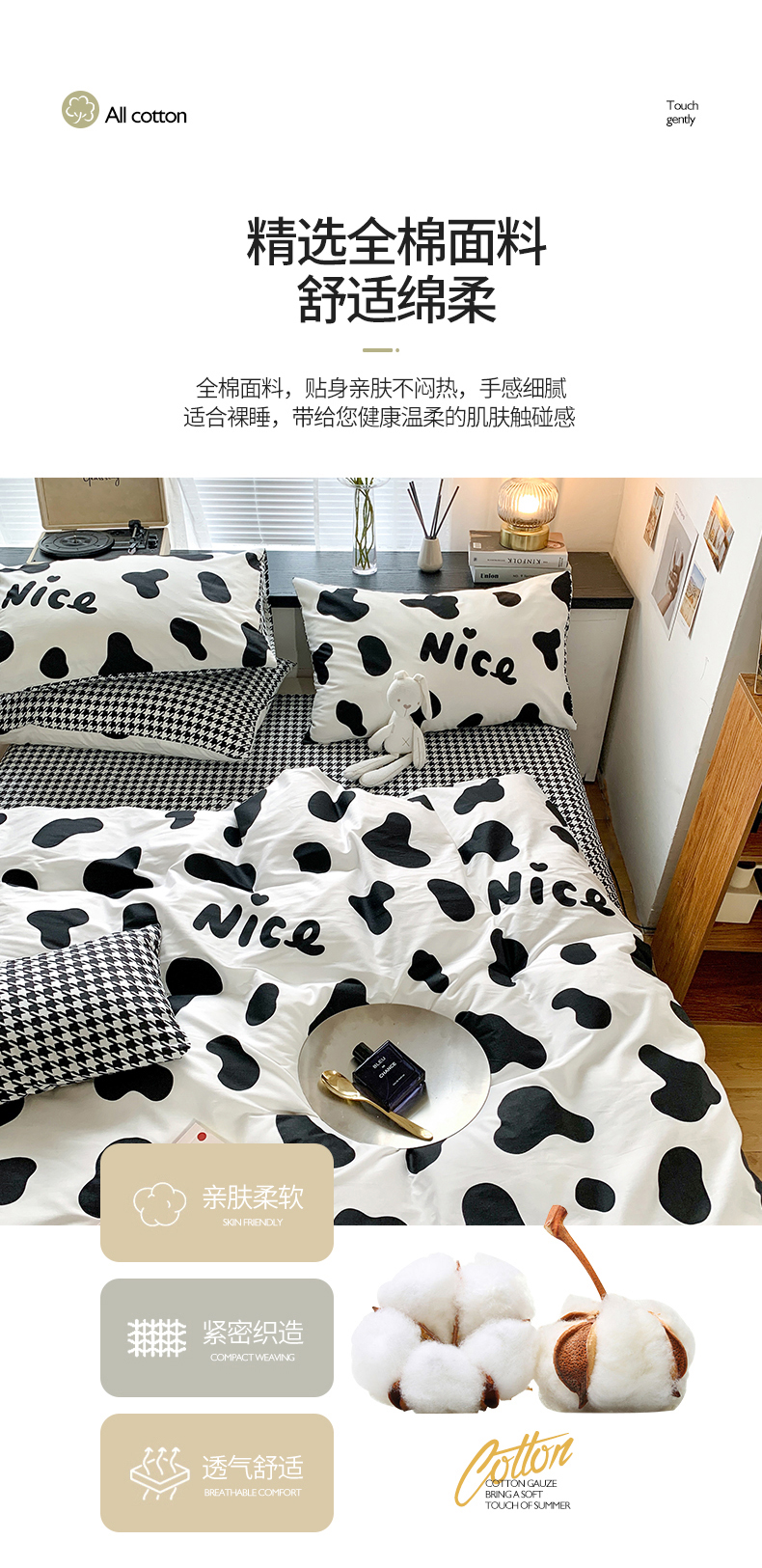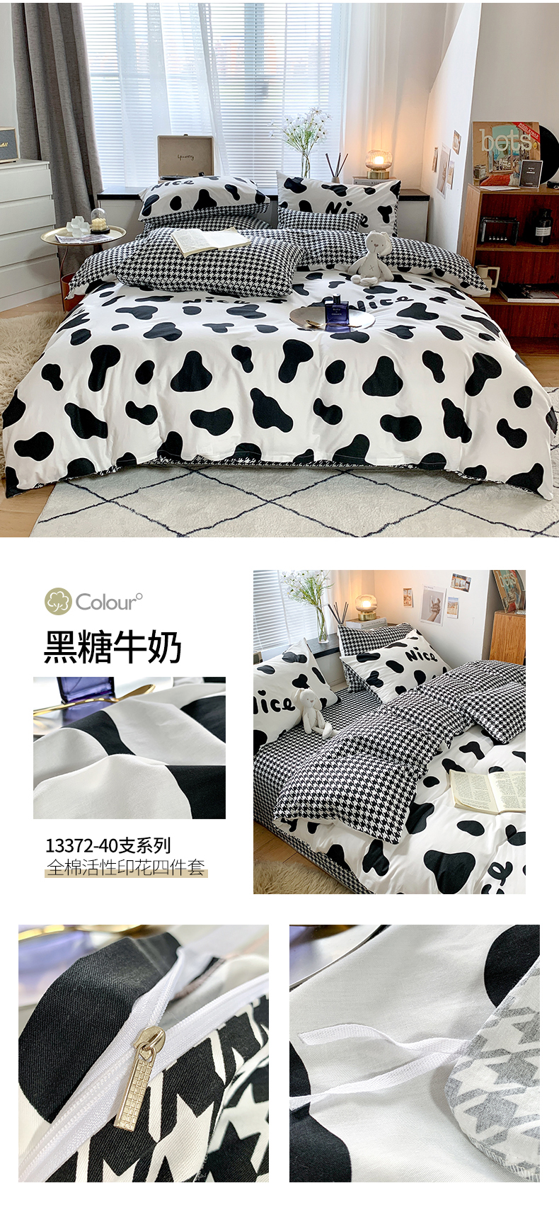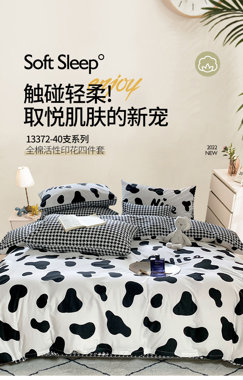 当前位置: 91家纺网 > 商品网购 > 床品套件 > 四件套 > 全棉普通四件套 > 朵希曼 2026新款全棉北欧黑白极简系列四件套 黑糖牛奶