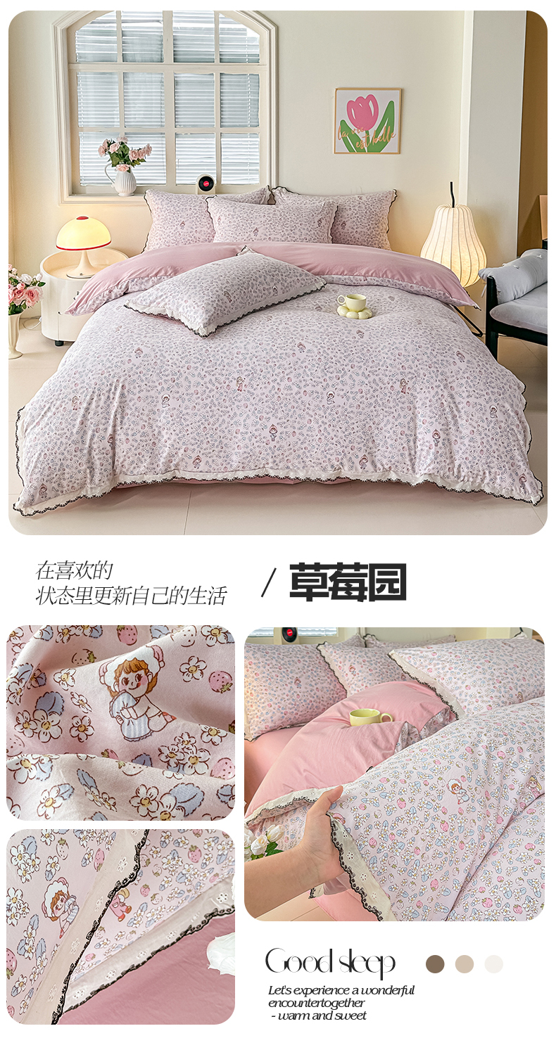 (总)梓之赫 2026新款古法水洗云感棉四件套,爱玛,草莓园,花漾集,花枝笑语,恋心-灰,年轮,素雅-红,小柠檬,小熊依梦-红,小熊依梦-蓝,英伦熊