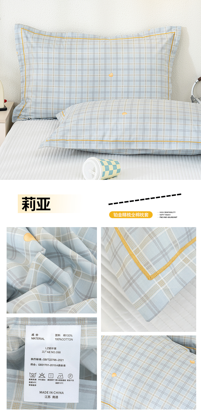 商品名称:良佐生活 2026新款40支铂金精梳全棉一字绣枕套 莉亚