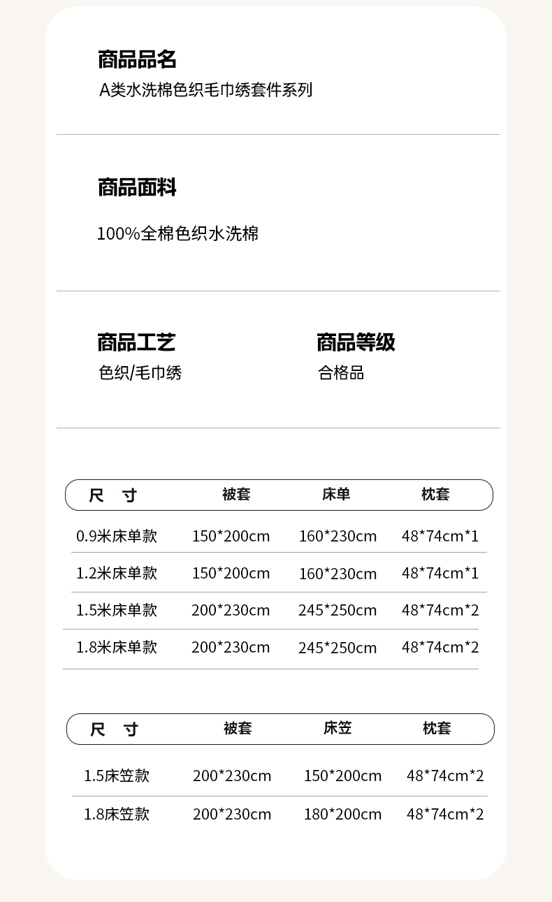 【床笠款】1.8四件套-被套200x230 | ¥140.00 |