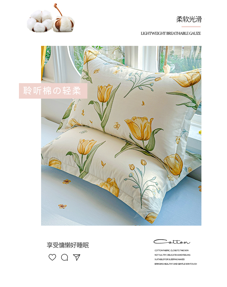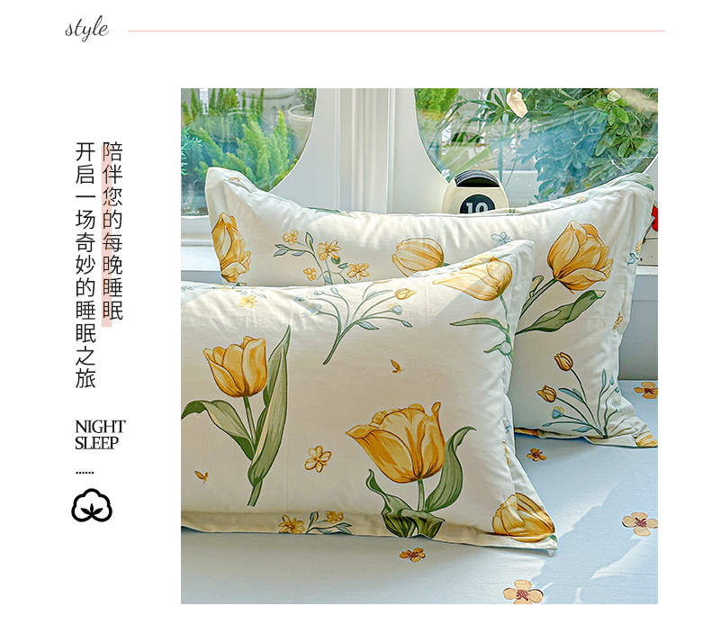 商品名称:佳汐蓝家纺 2026新款全棉纯棉加厚13376印花单品枕套 枕套单件 沐浴暖阳