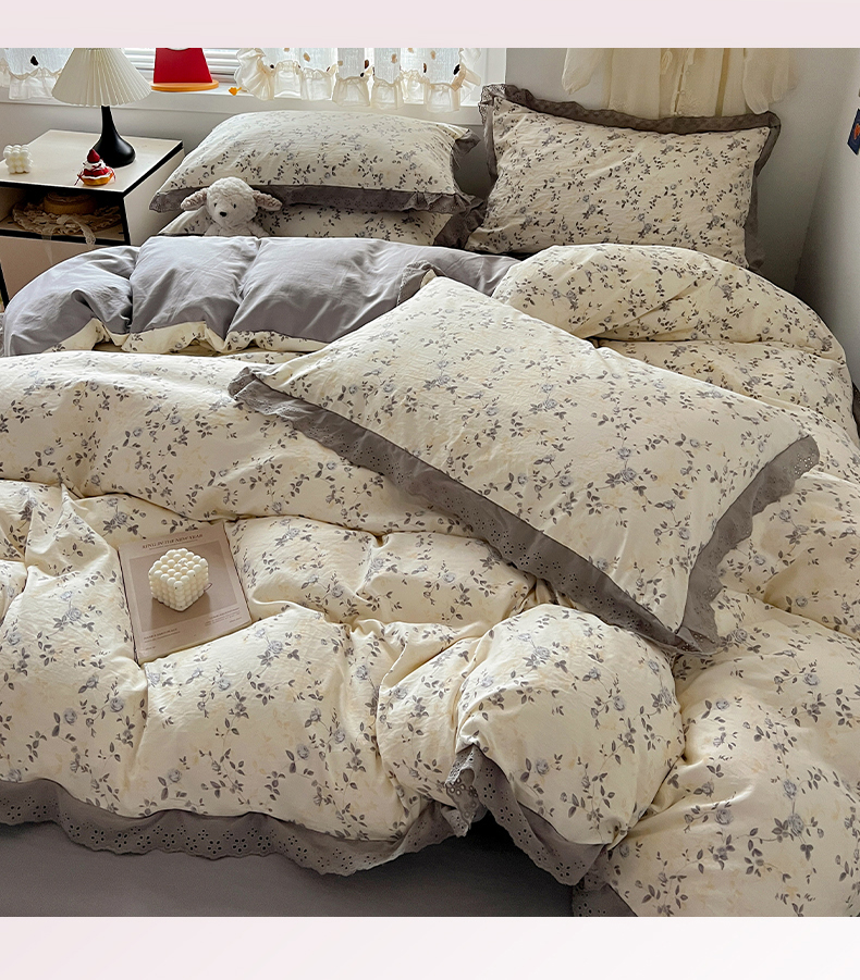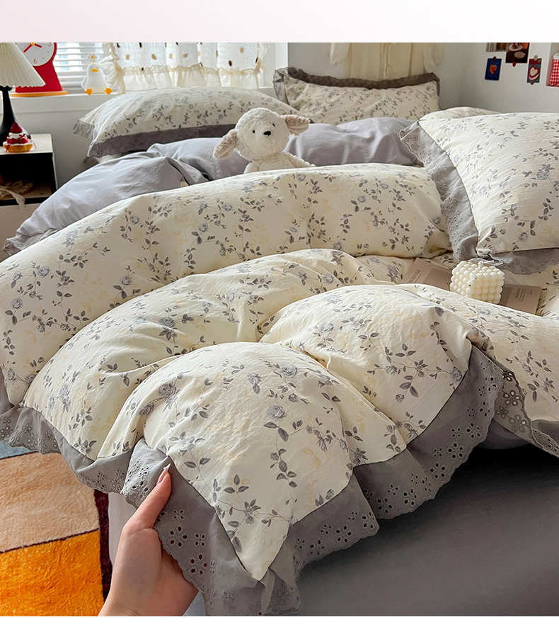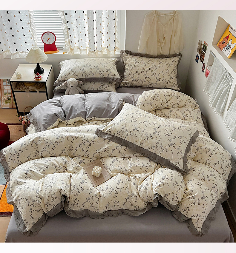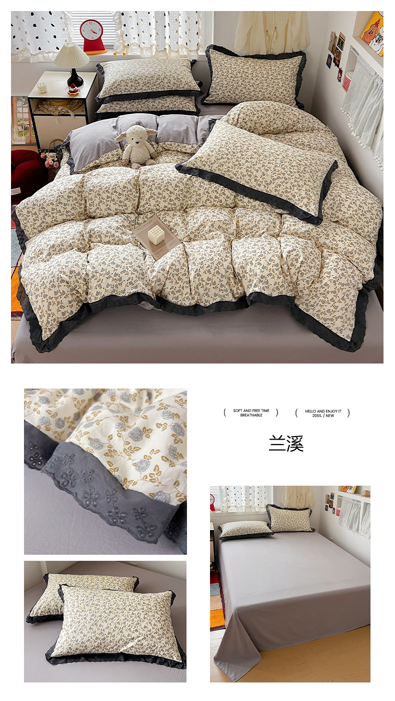 当前位置: 91家纺网 > 商品网购 > 床品套件 > 四件套 > 水洗棉四件套 > 逸林家纺《原希尔顿逸林》 2026新款春款古法水洗棉法式全棉花边四件套森系花边款四件套 组合图仅供展示-不可下单