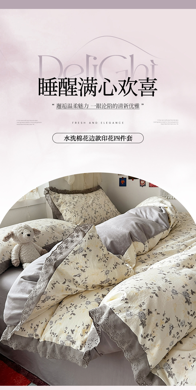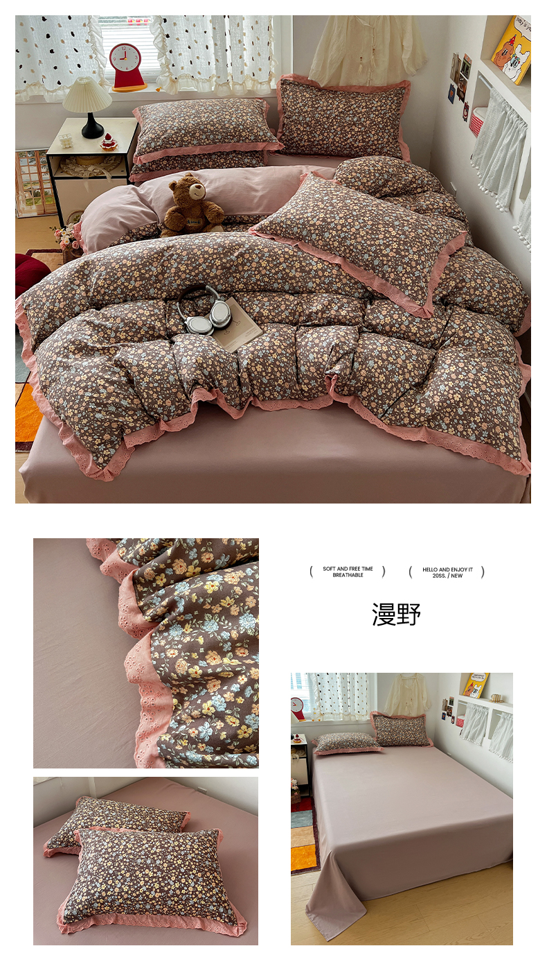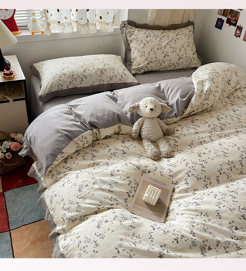 当前位置: 91家纺网 > 商品网购 > 床品套件 > 四件套 > 水洗棉四件套 > 逸林家纺《原希尔顿逸林》 2026新款春款古法水洗棉法式全棉花边四件套森系花边款四件套 组合图仅供展示-不可下单