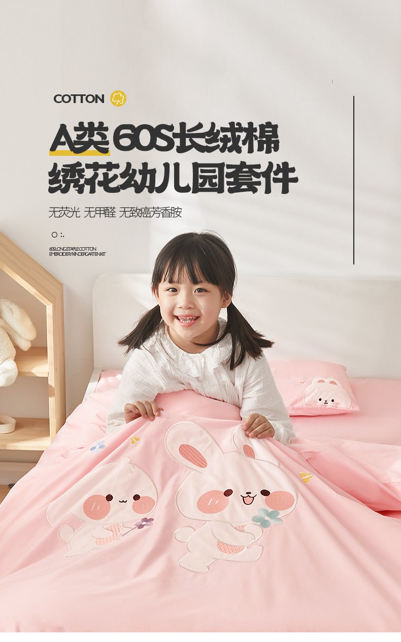 当前位置: 91家纺网 > 商品网购 > 床品套件 > 多件套 > 多件套 > 荷马之梦 2026新款A类60s长绒棉绣花幼儿园套件-萌享系列 贝塔兔