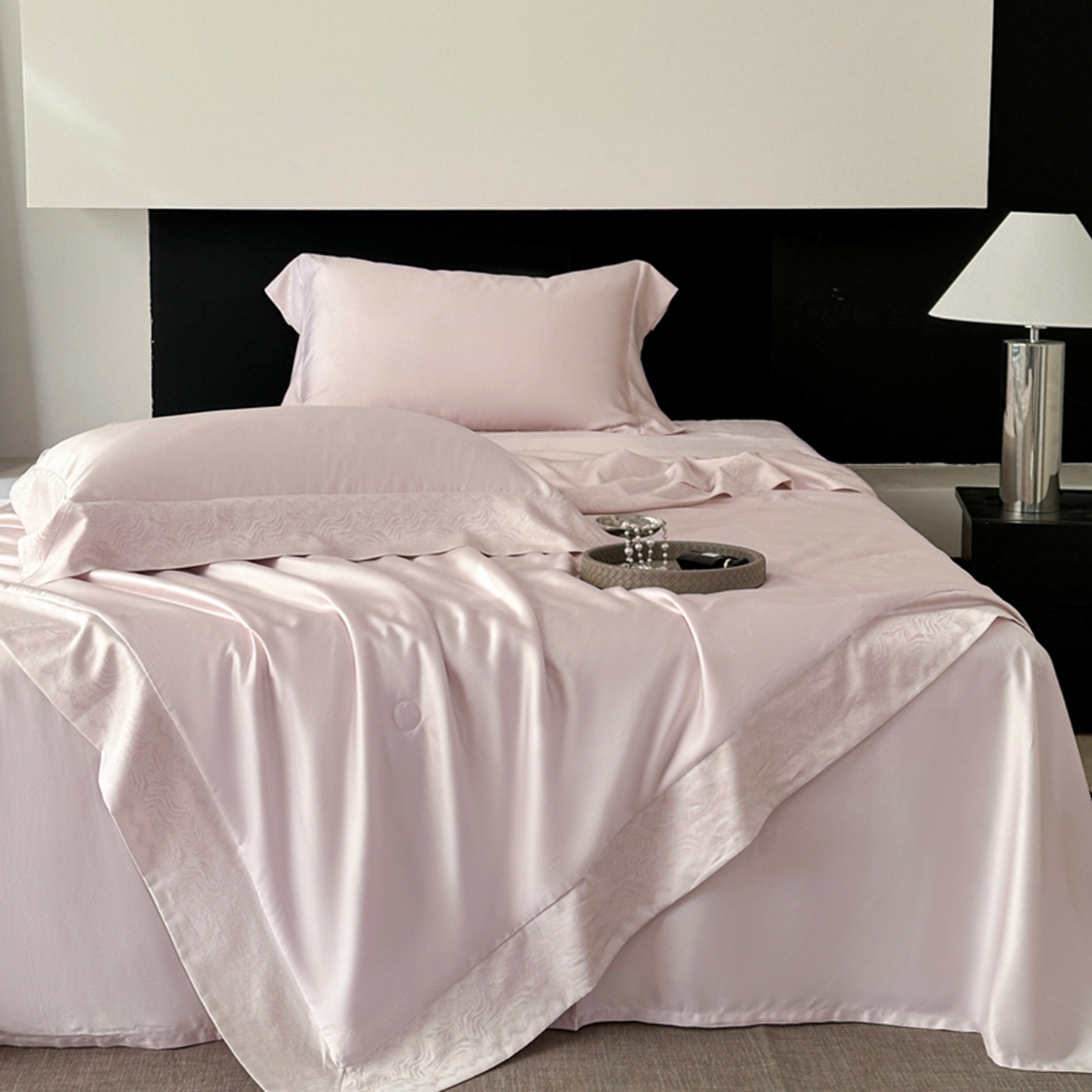 (总)娇逸家居 2026新款60天丝素色金丝提花拼边款夏被夏凉被空调被四件套-芙莉