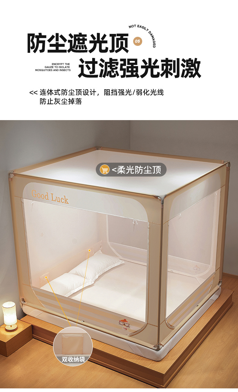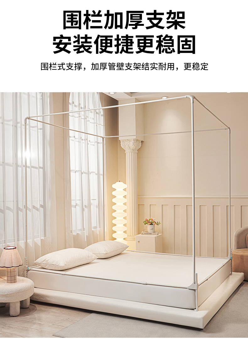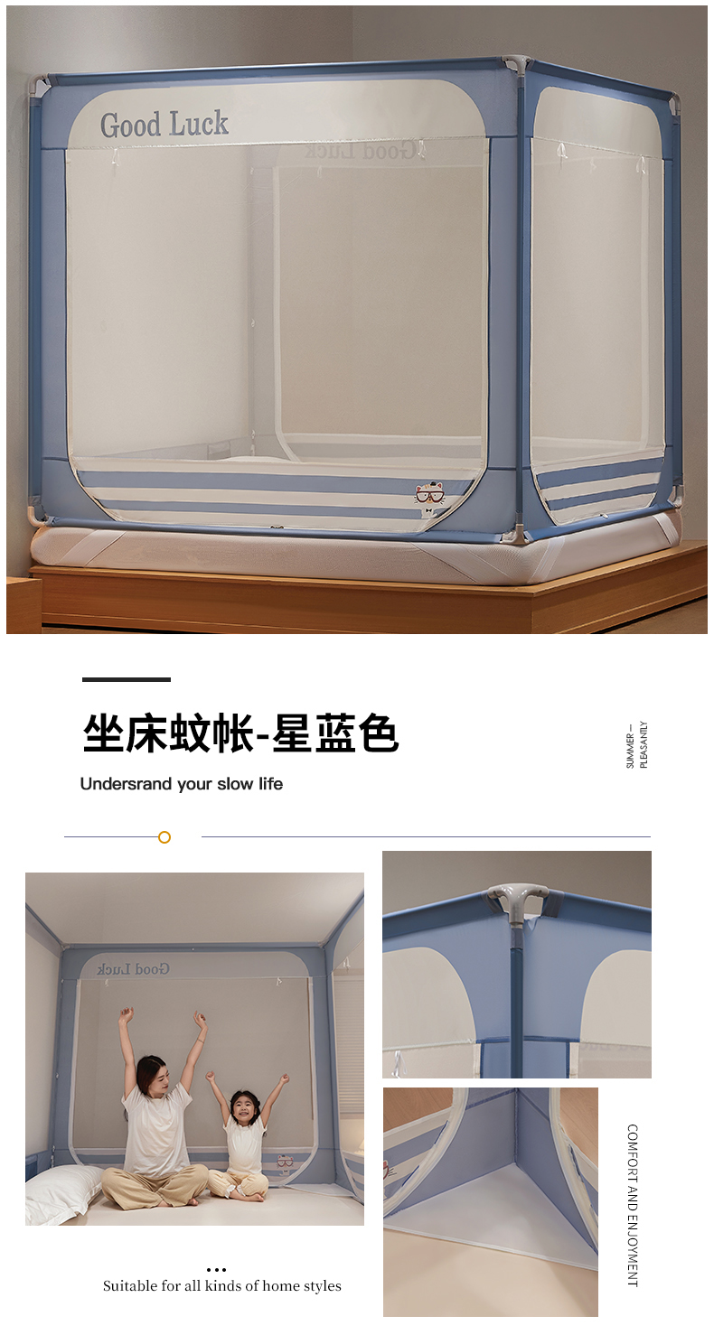 当前位置: 91家纺网 > 商品网购 > 床上用品 > 蚊帐 > 坐床式蚊帐 > 雪姿家纺 2026新款外穿杆三开u型门回底床笠款防摔蚊帐-星梦 星梦-浅水蓝
