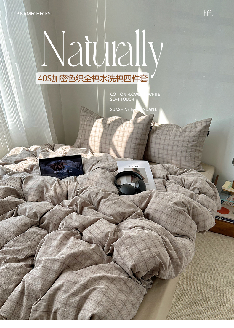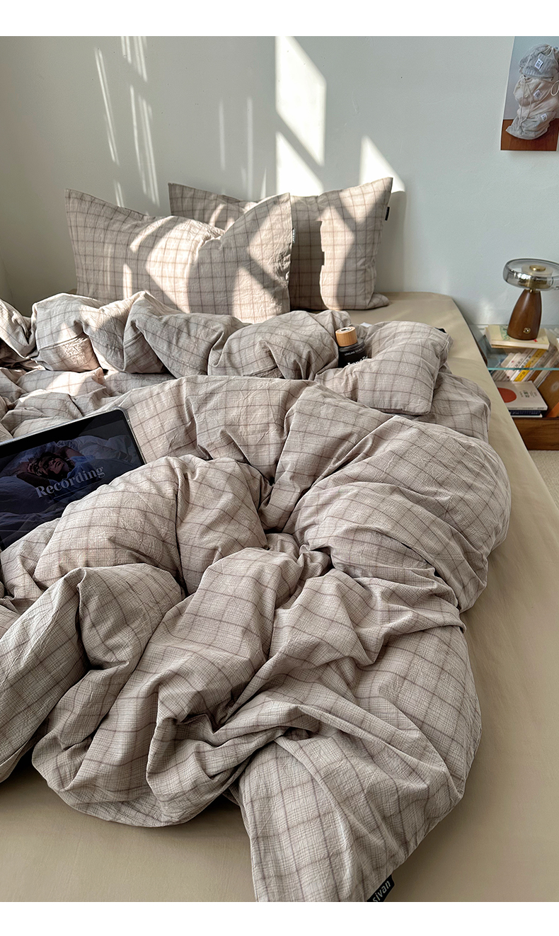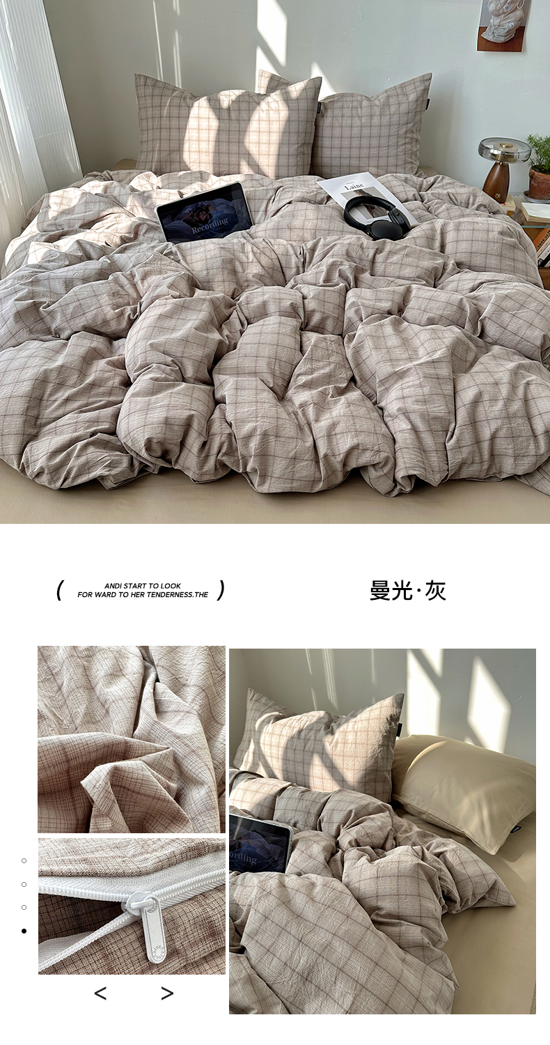 当前位置: 91家纺网 > 商品网购 > 床品套件 > 四件套 > 全棉普通四件套 > XIWEN-希文家纺 2026春夏新款40支全棉纯棉色织水洗棉四件套 曼光-灰