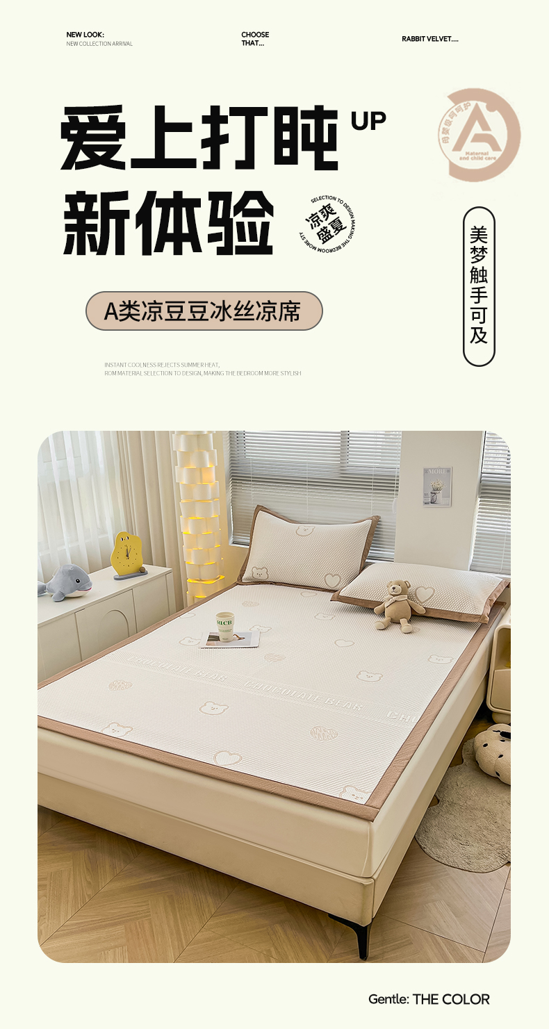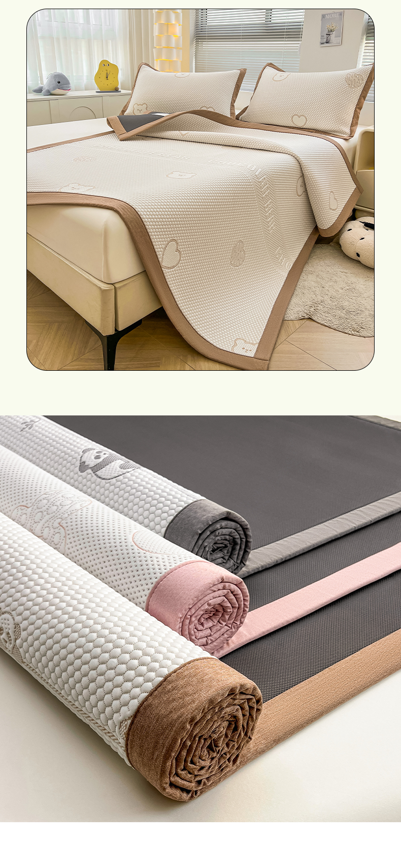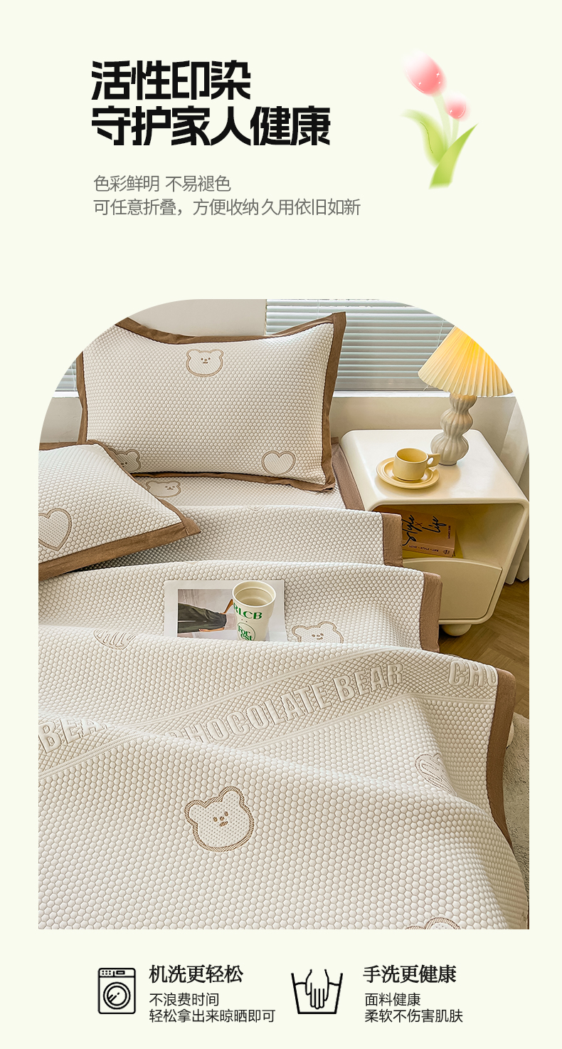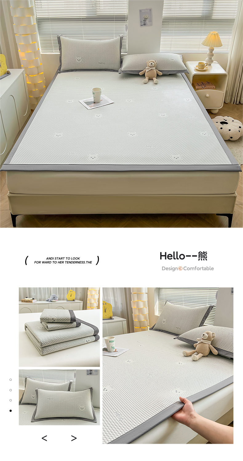 (总)凯罗 2026新款可水洗凉豆豆夏季席子凉席三件套,Hello--熊,爱心小熊--浅粉,敦敦熊--浅粉,敦敦熊--蓝灰,爱心小熊-咖,花儿朵朵--浅粉