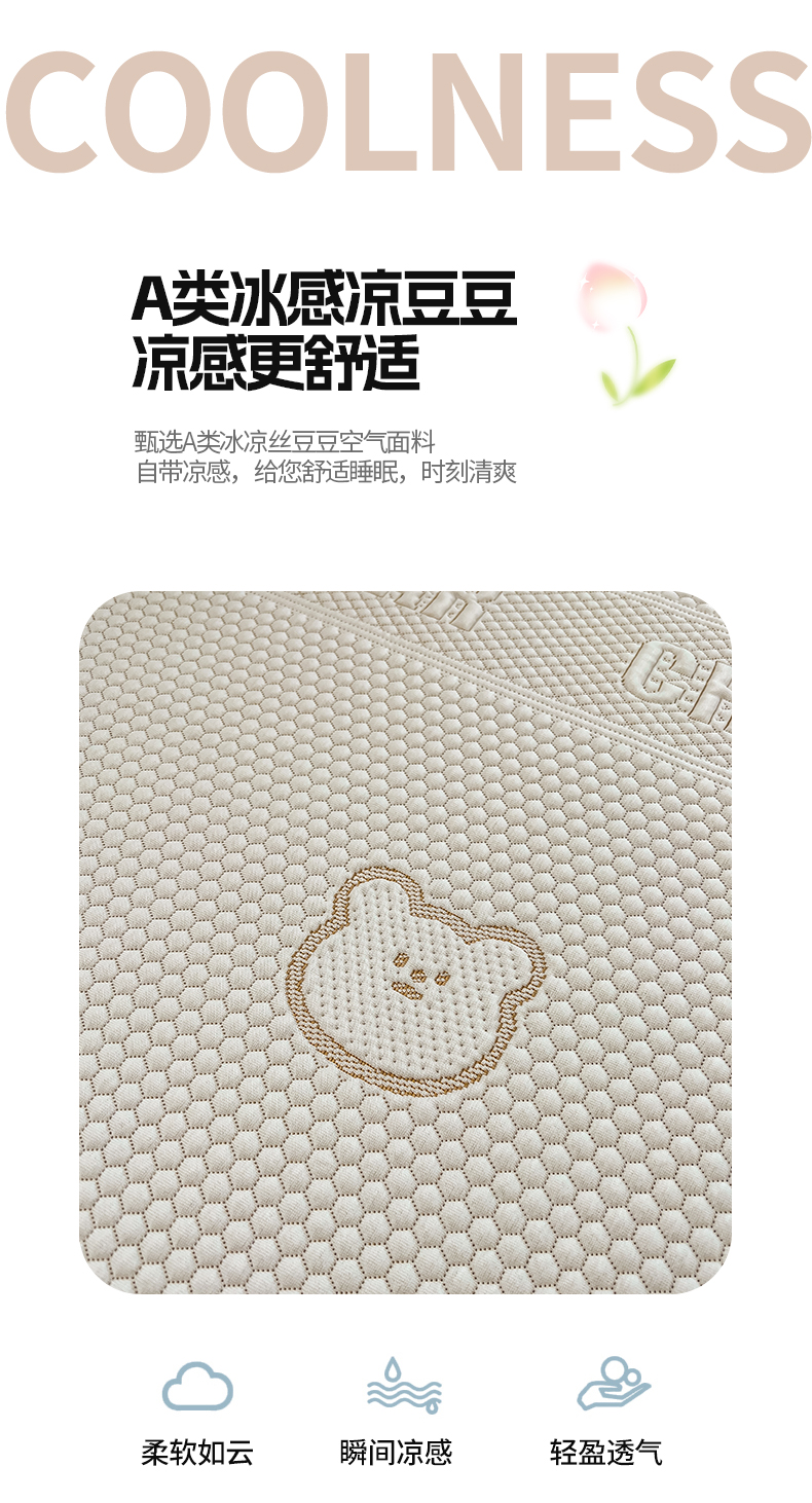 (总)凯罗 2026春夏凉豆豆小红书爆款A类乙纶PE凉豆豆床席款可水洗床席,波点草莓-粉,布丁萌萌熊,小萌狗,小南瓜-桔