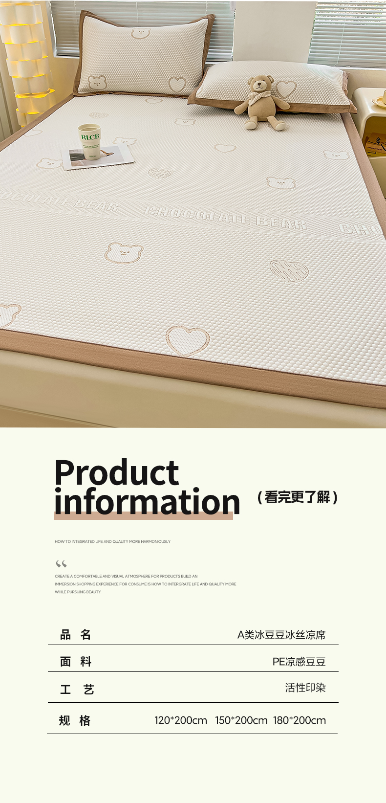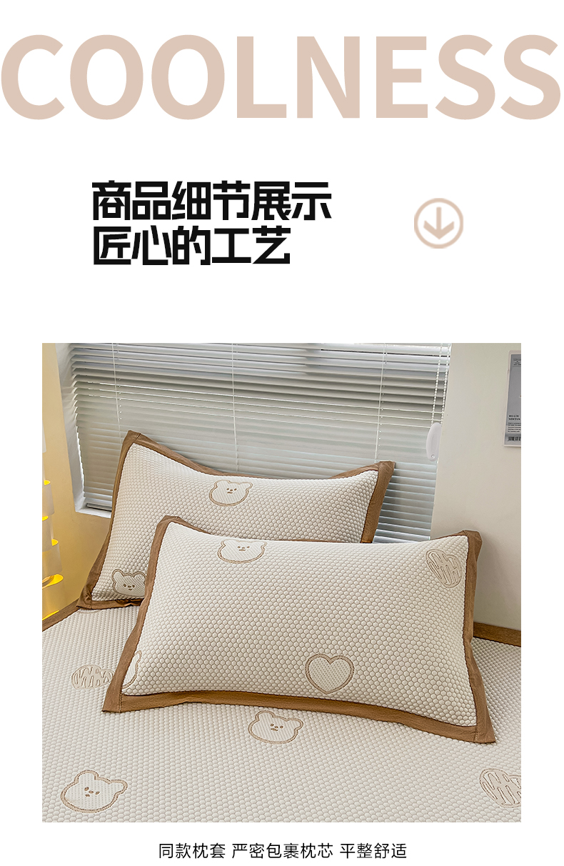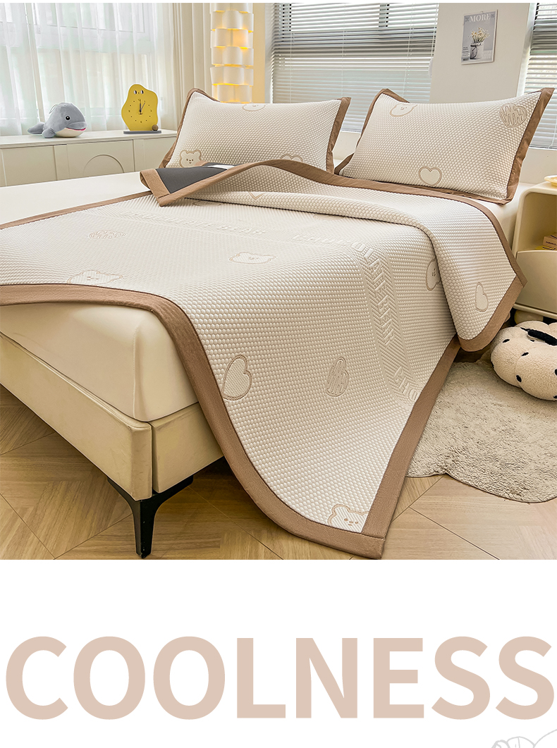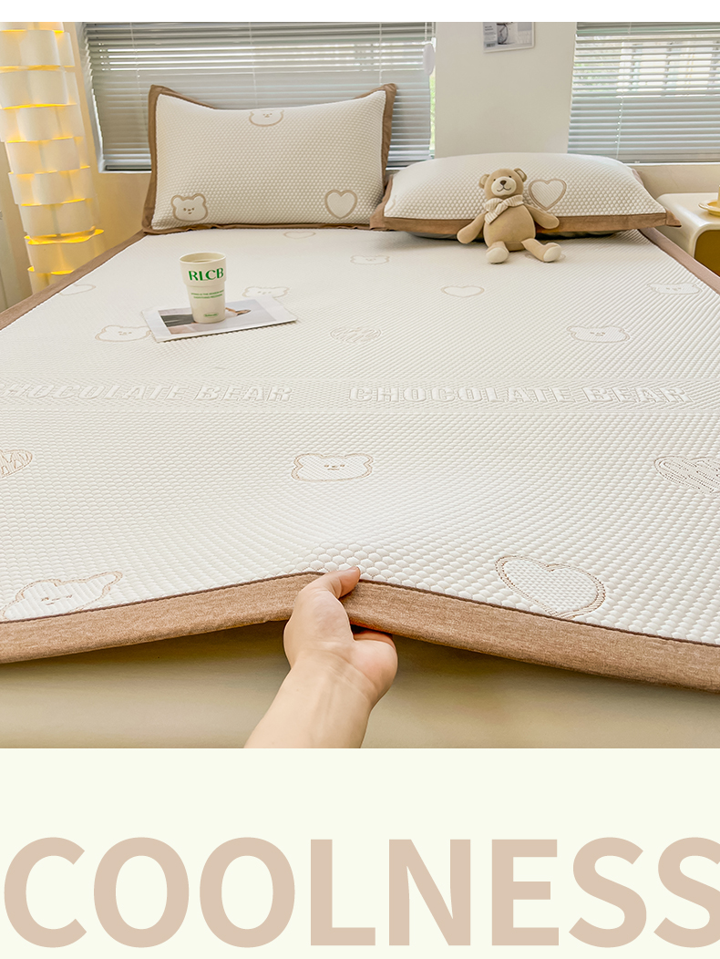 商品名称:凯罗 2026新款可水洗凉豆豆夏季席子凉席三件套 爱心小熊-咖