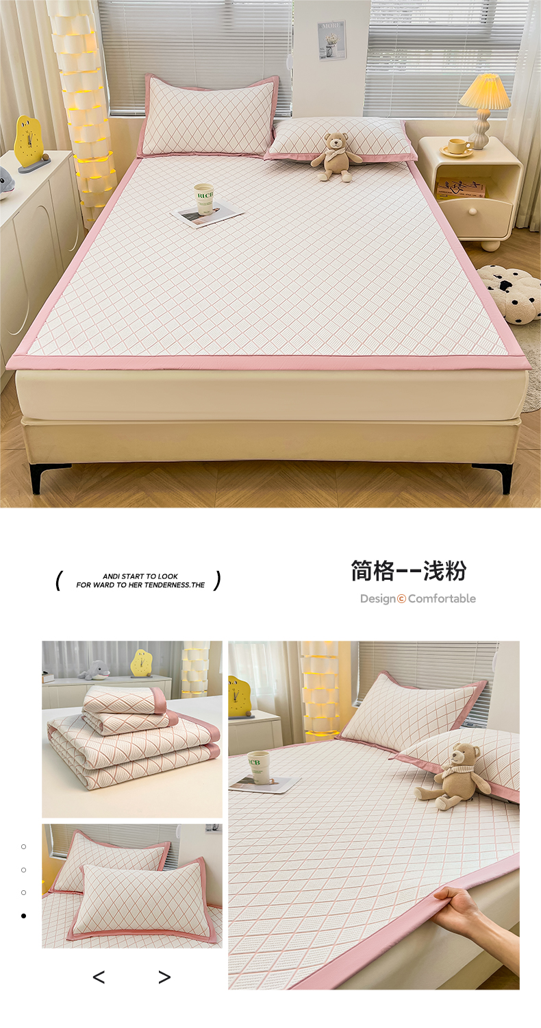 (总)凯罗 2026新款凉感提花冰丝床笠床席三件套冰感抗菌床席床笠三件套--床席款,简约生活--粉
