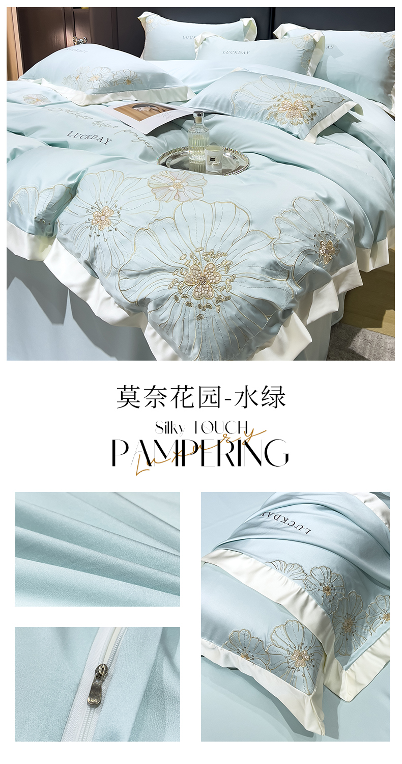 当前位置: 91家纺网 > 商品网购 > 床品套件 > 四件套 > 莱赛尔四件套 > 优贝家纺 2026新款天丝刺绣四件套-莫奈花园 莫奈花园-水绿