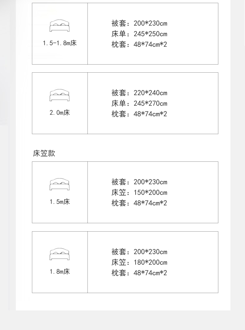 【床笠款】1.8四件套-被套200x230 | ¥105.00 |