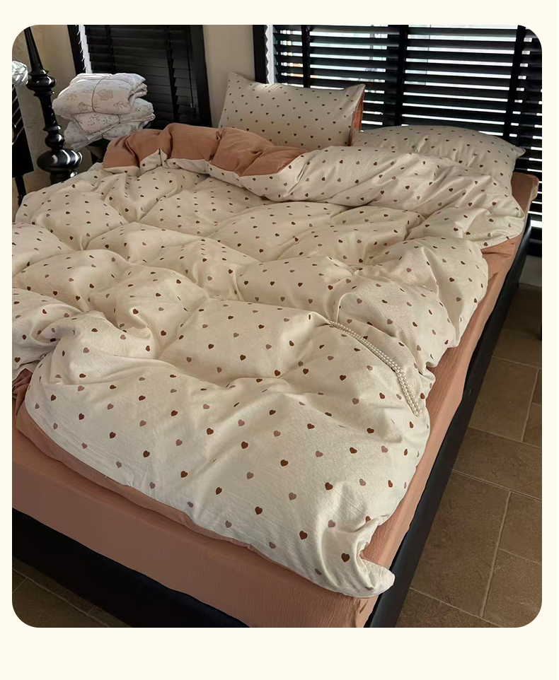 美丽坊 2026新款韩系沐纱棉印花四件套 白茶