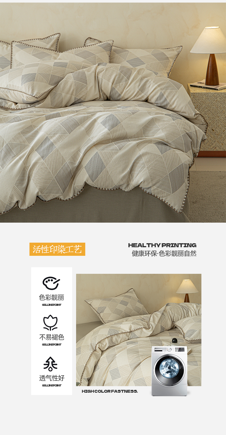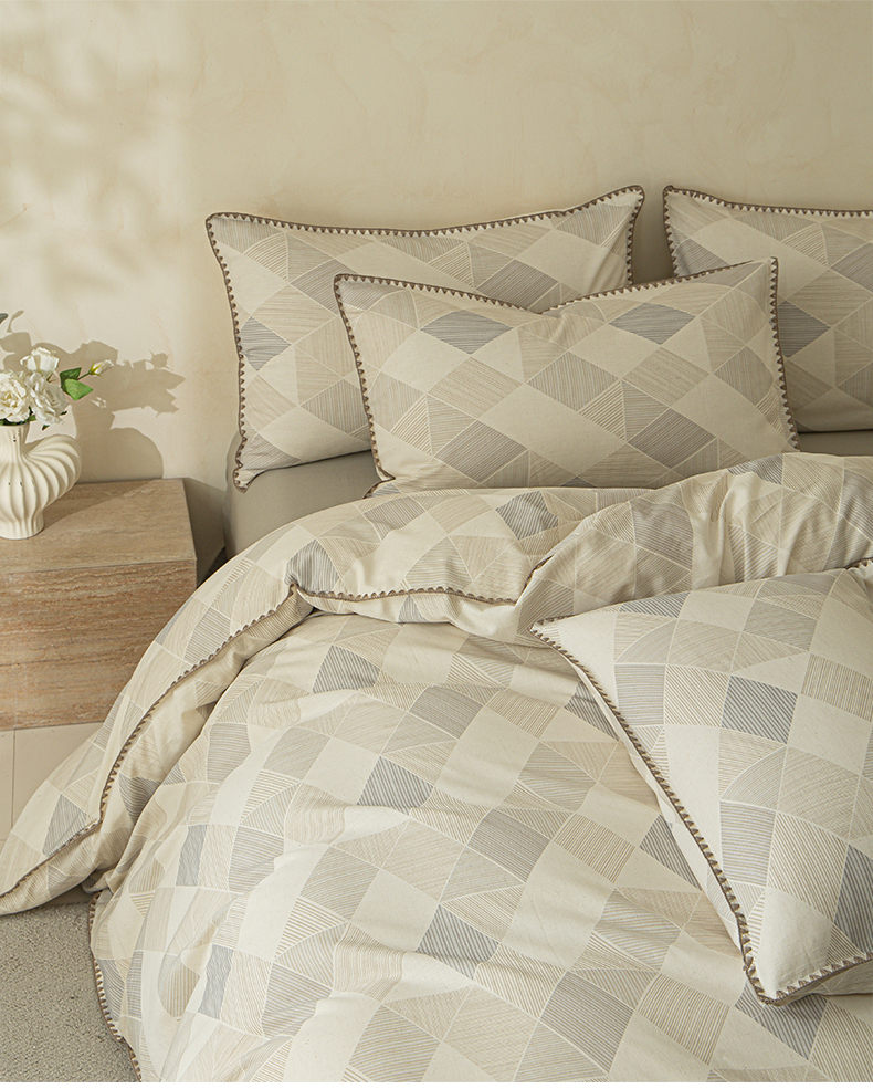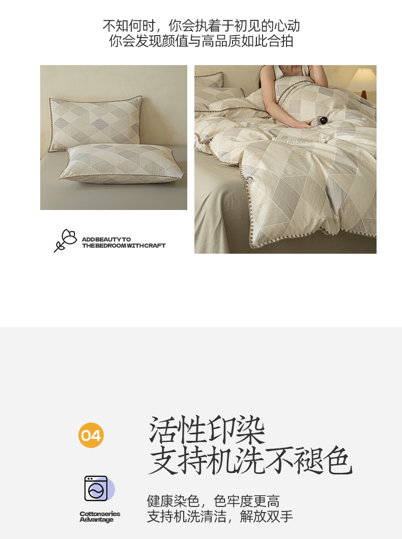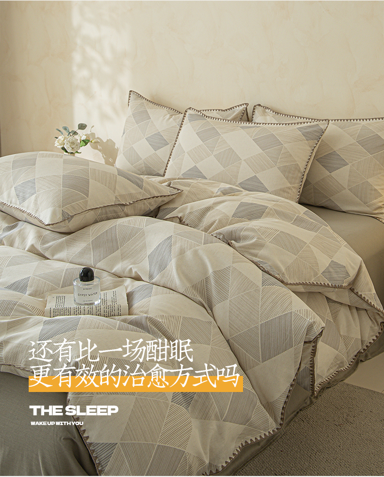 商品名称:桃子家居 2026新款A类纯棉棉麻三角针工艺贝壳边简约水洗棉麻四件套系列 棉麻-三角针菱序