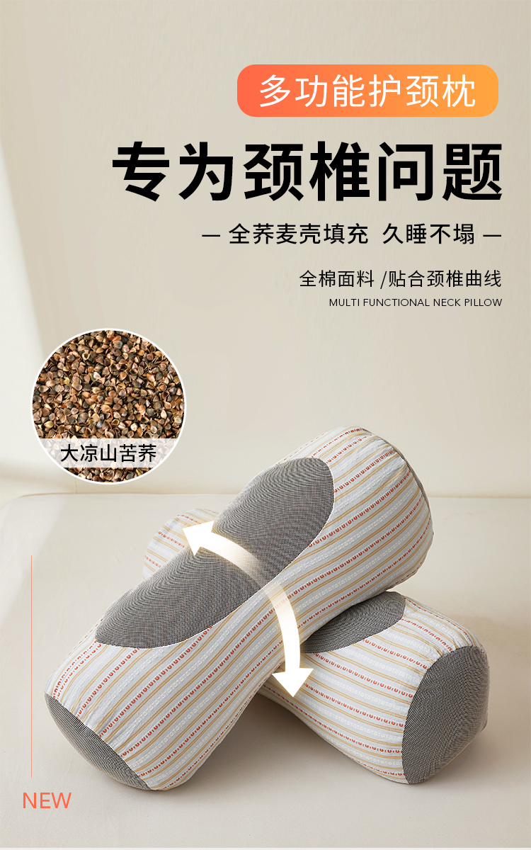 商品名称:小桃姐家纺 2025新款全棉纯棉圆柱荞麦枕护颈椎元宝枕枕头枕芯 A1全棉圆柱荞麦枕-【粉色】