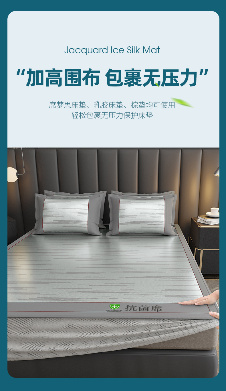 当前位置: 91家纺网 > 商品网购 > 床上用品 > 凉席 > 凉席套件 > 小牛席业 2026新款A加厚款-可机洗抗菌提花冰丝席(床笠款) 抗菌席-魔幻方格-灰色