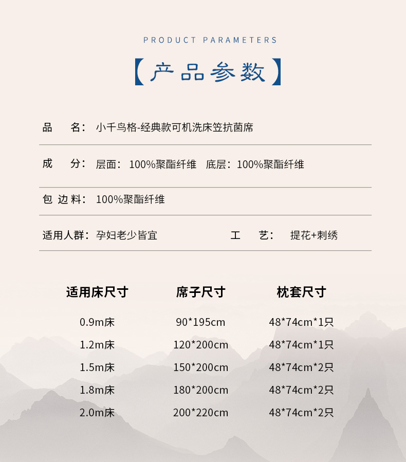 商品名称:小牛席业 2026新款小千鸟格-经典款抗菌席(床笠款) 咖色