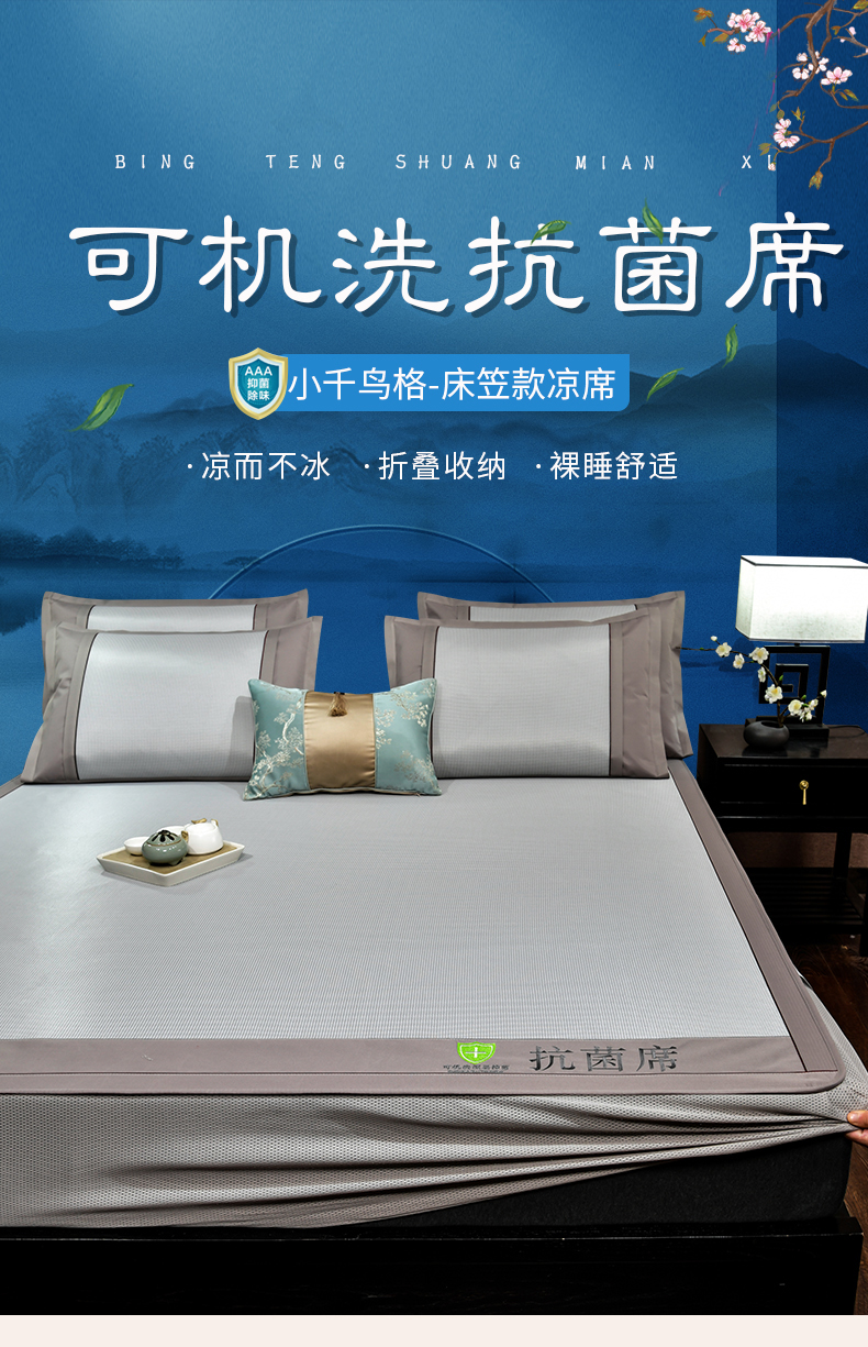 (总)2023新款超精密冰丝席-小斜纹系列-床笠款藤席凉席竹席,粉色,蓝色,绿色,银灰