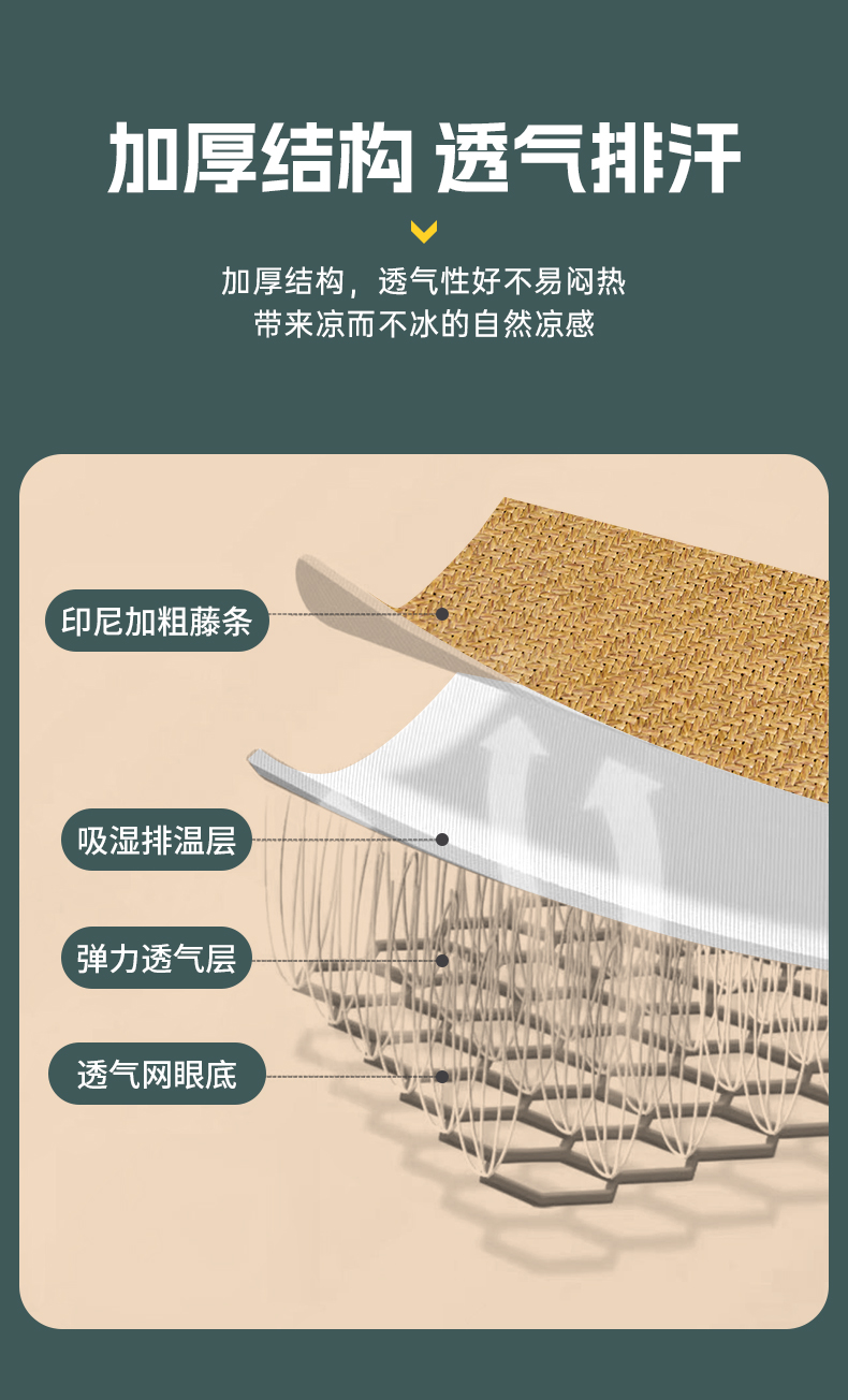 2023新款夏日冰点-冰藤双面席凉席藤席竹席冰丝席乳胶席,咖色,蓝色,绿色,香槟