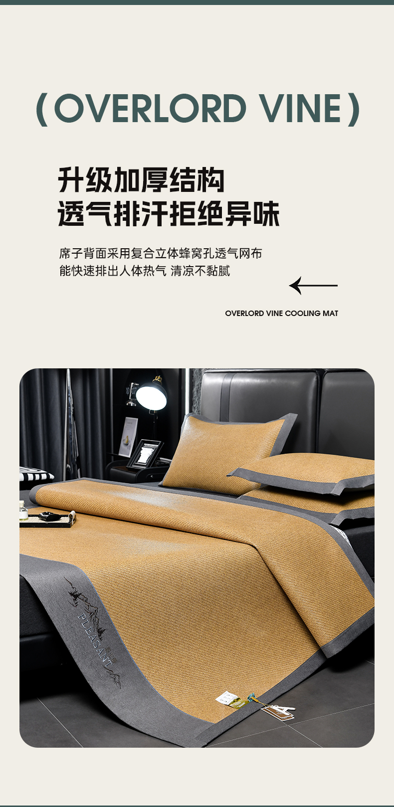 (总)小牛席业2023新款小苍兰清香冰藤席系列凉席竹席冰丝席乳胶席,黑咖,金色,绿色,浅蓝,香槟,银灰