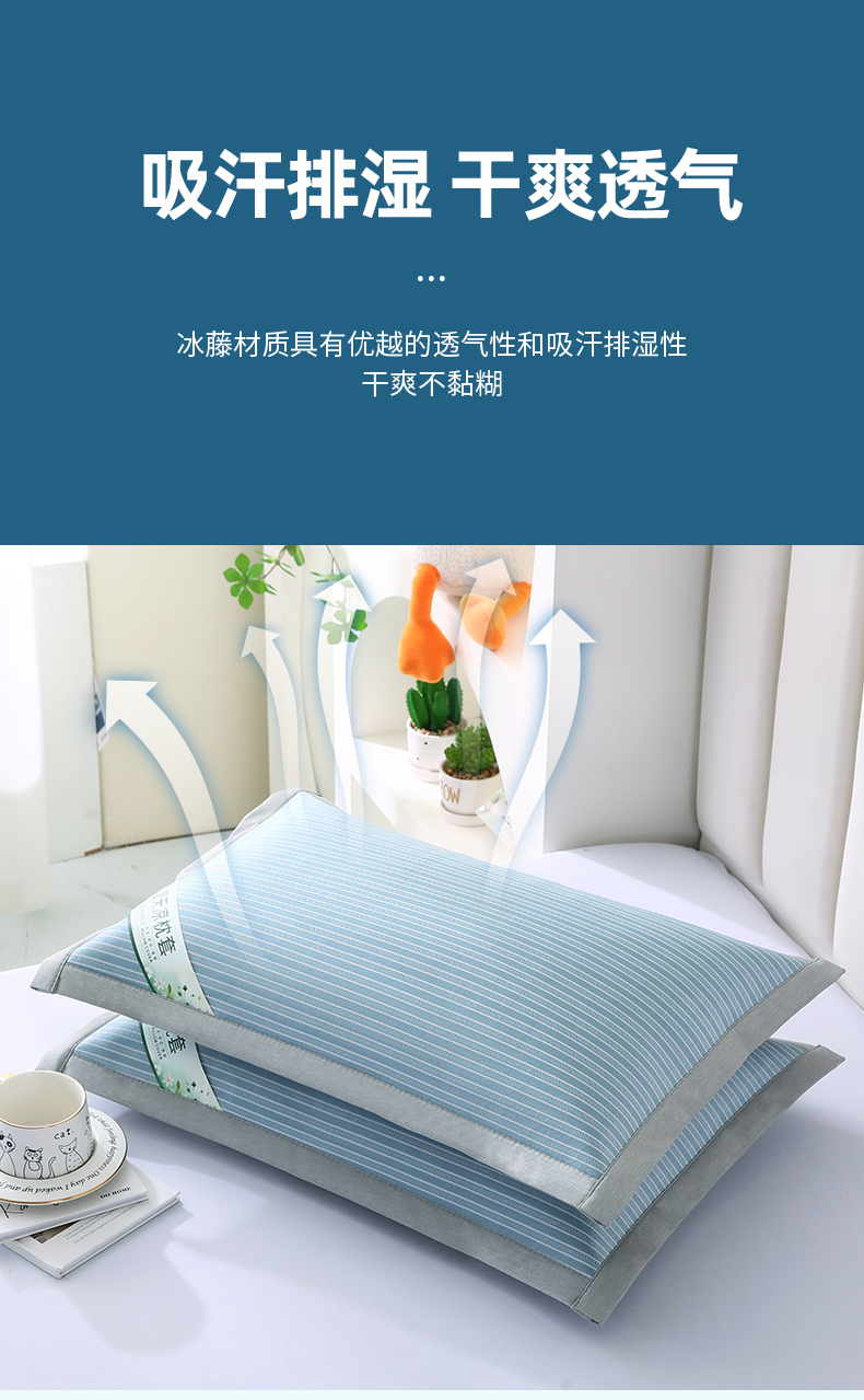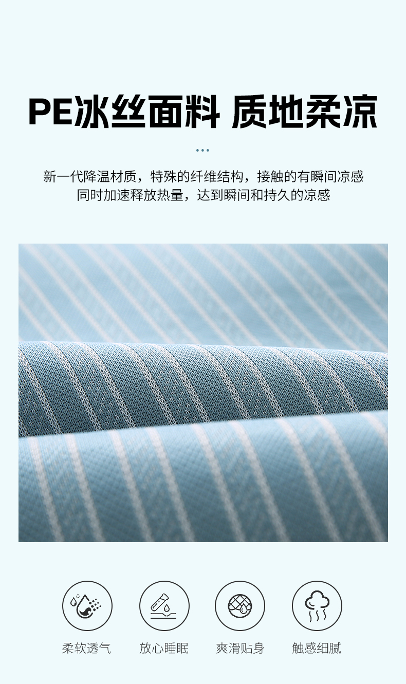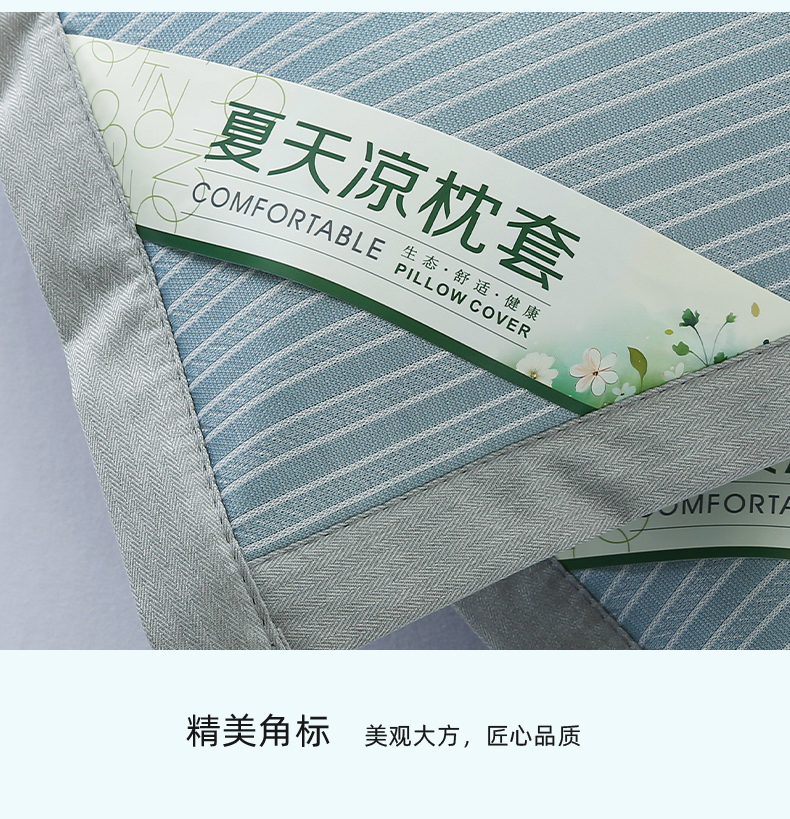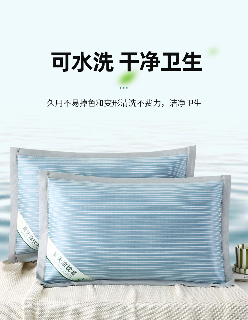 商品名称:小牛席业 2026新款经典条纹-冰丝夏凉枕套 蓝色