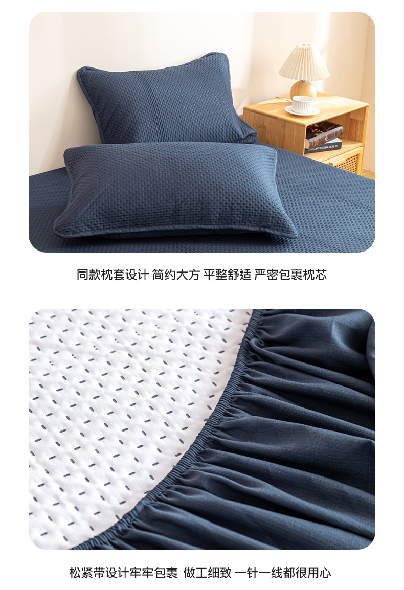 (总)宇淳国际 2026新款美人条A类水洗棉夹棉床笠三件套,白色,卡其,奶黄,浅灰,深灰,天蓝