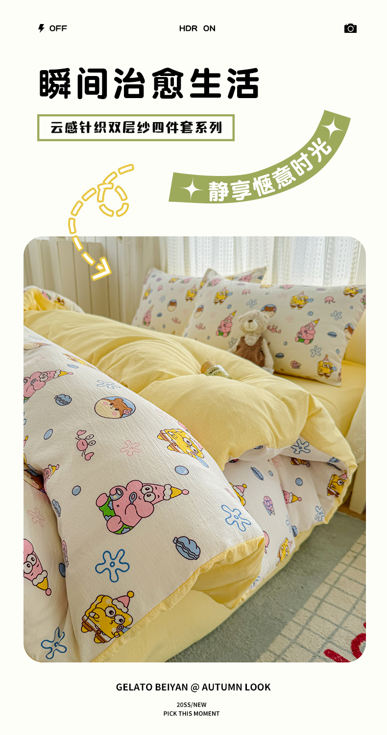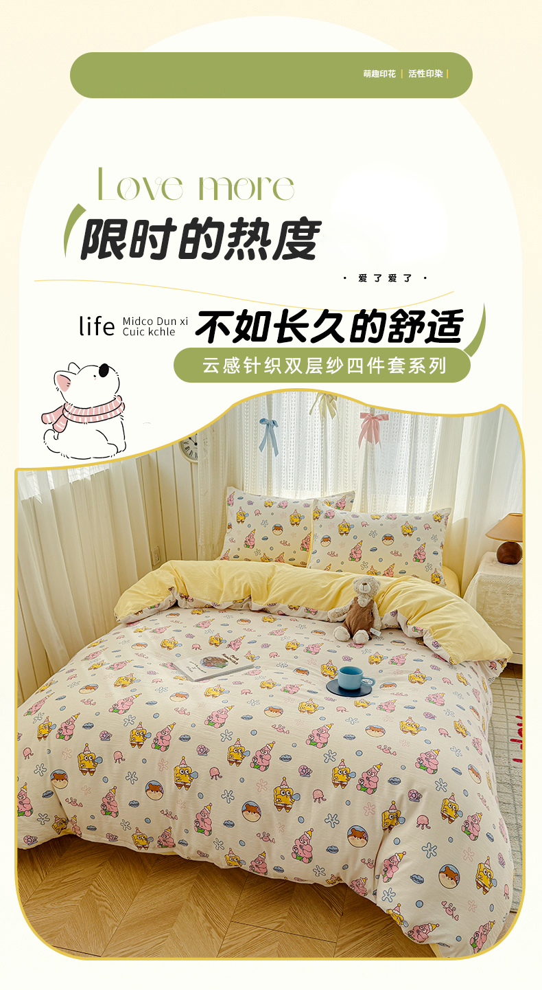 当前位置: 91家纺网 > 商品网购 > 床品套件 > 四件套 > 双层纱四件套 > 温眠家纺 2026新款云感针织提花双层纱四件套 小海绵