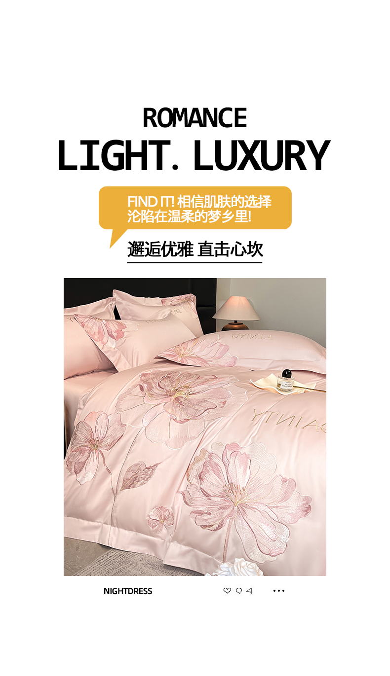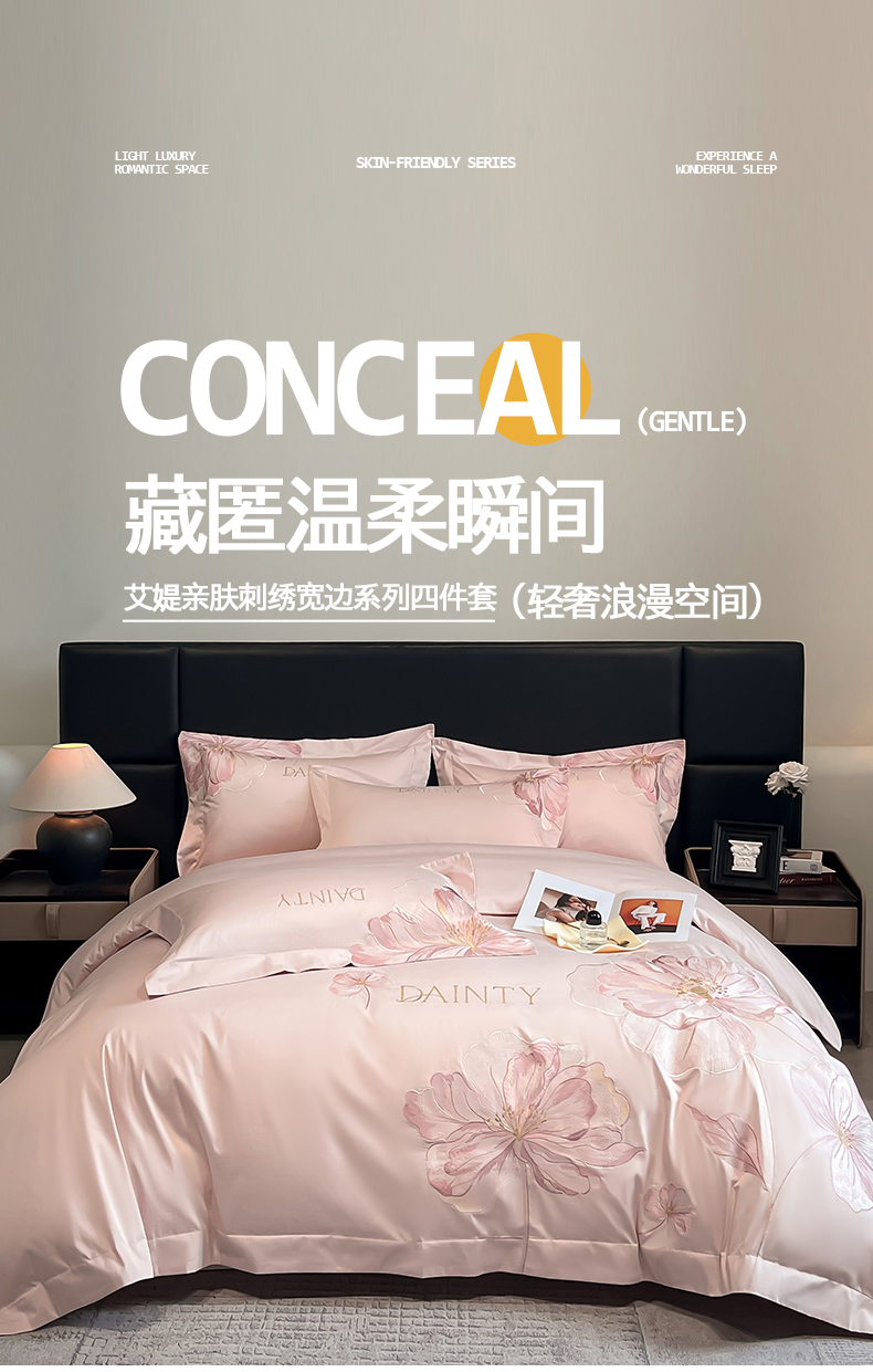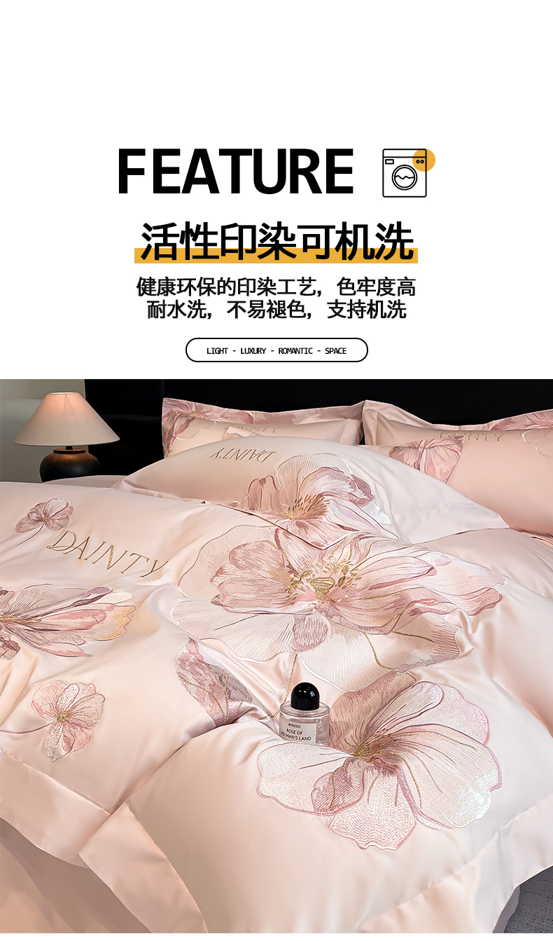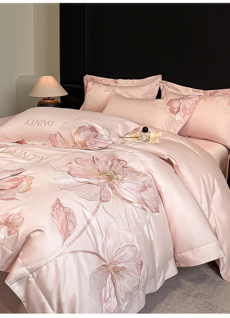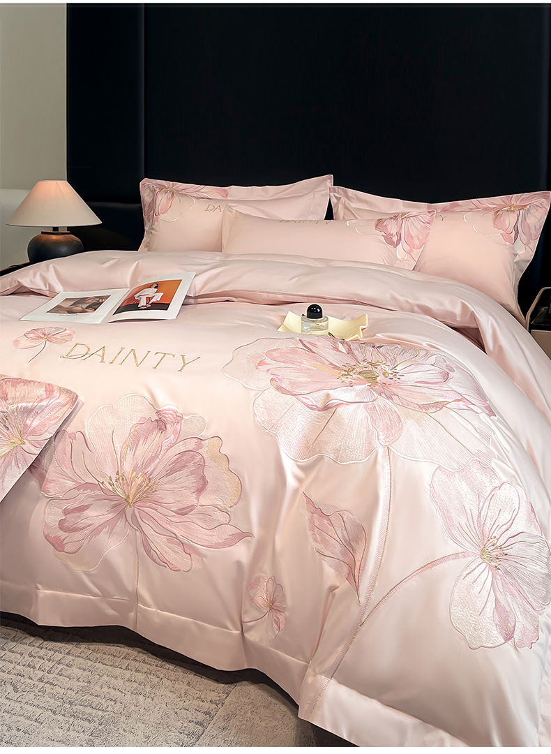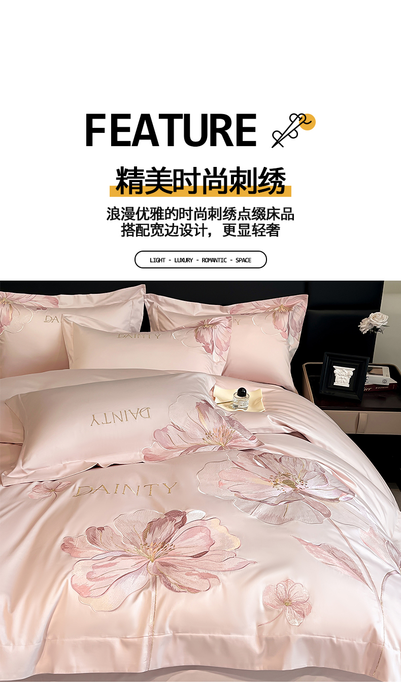 当前位置: 91家纺网 > 商品网购 > 床品套件 > 四件套 > 其它四件套 > 置顶家纺 2026新款春夏亲肤刺绣艾媞系列四件套 艾媞-粉