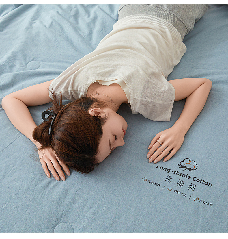 被子 > 普通夏被 > 创优家纺 2026新款棉花夏被无印风纯色新疆棉夏凉被空调被棉花夏被棉花被子百分百新疆棉(专版烫画 盗版必究) 新疆棉-蓝色