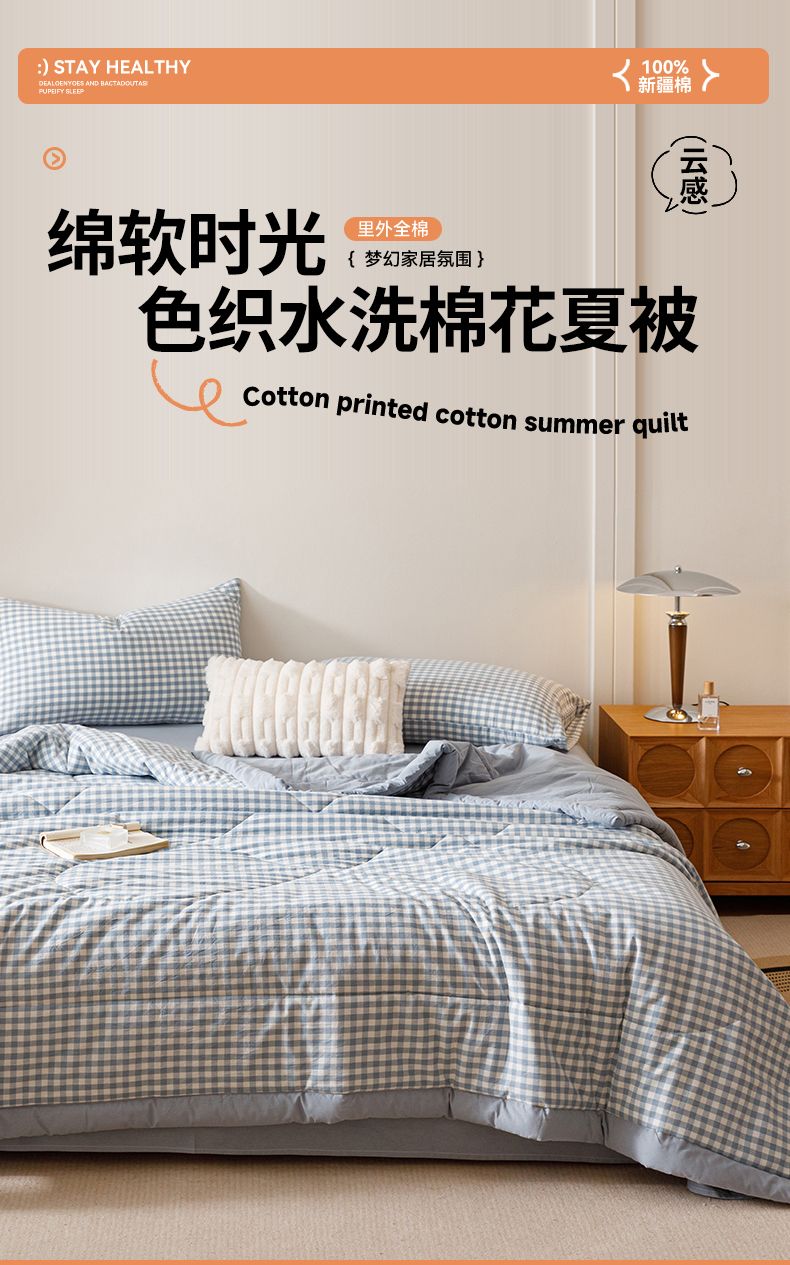 商品名称:(总)恬思语家纺 2026新款全棉纯棉色织水洗棉棉花夏被空调被夏凉被四件套
