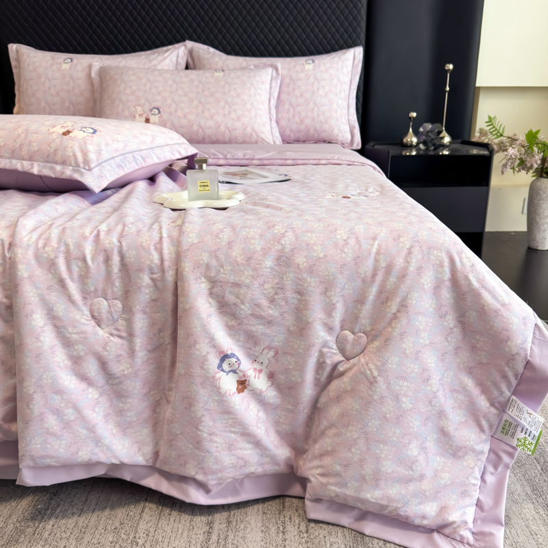 (总)赛丽雅 2026新款拼角轻奢冰丝凉感夏被四件套,安妮,安睡熊-粉,安睡熊-绿,花束,花田兔-粉,莫奈花园-灰,苏梨,摇摇马,云兮,悸动,曼迪,倾城,热带雨林,赛雅-粉,赛雅-绿,雅婷