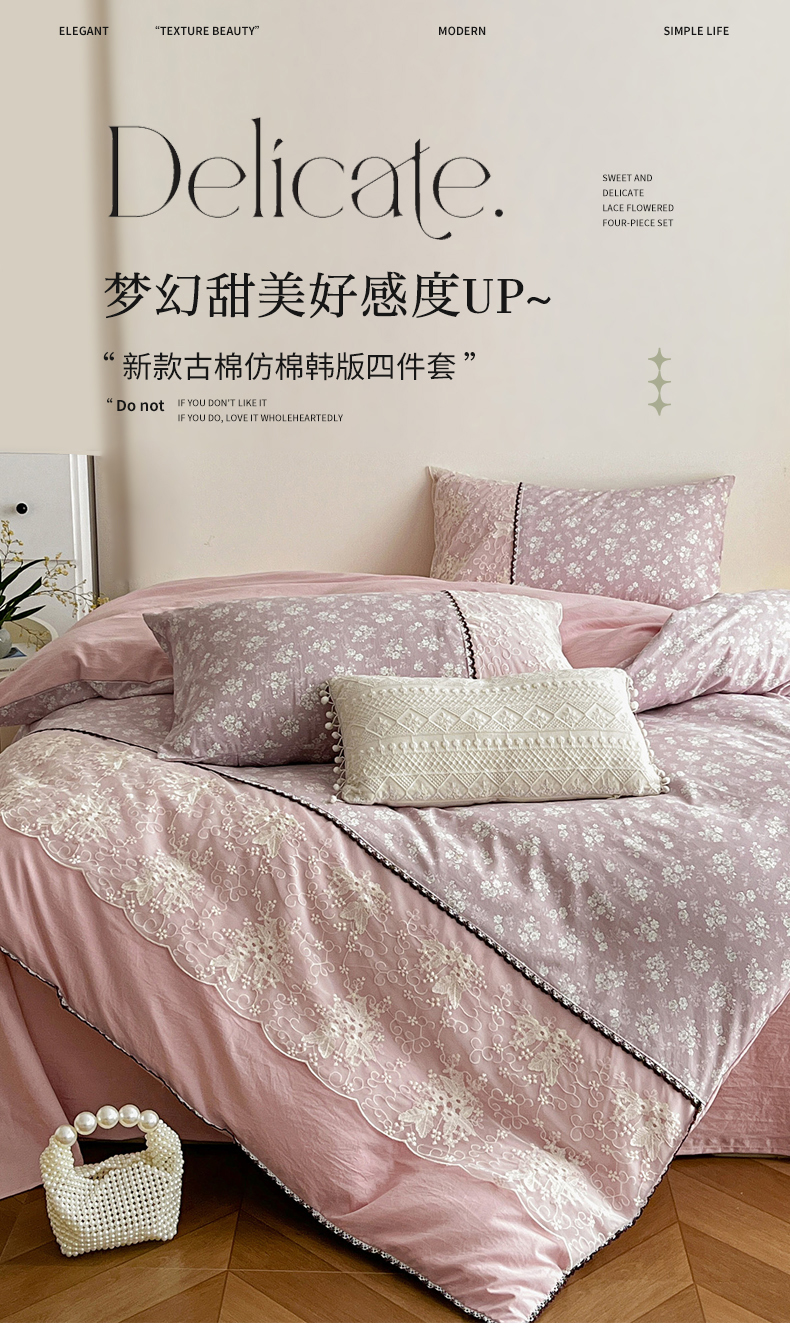 当前位置: 91家纺网 > 商品网购 > 床品套件 > 四件套 > 水洗棉四件套 > 纽缦家纺 2026新款A类105g仿棉四件套古法水洗棉套件-韩版系列 韩版-波影紫