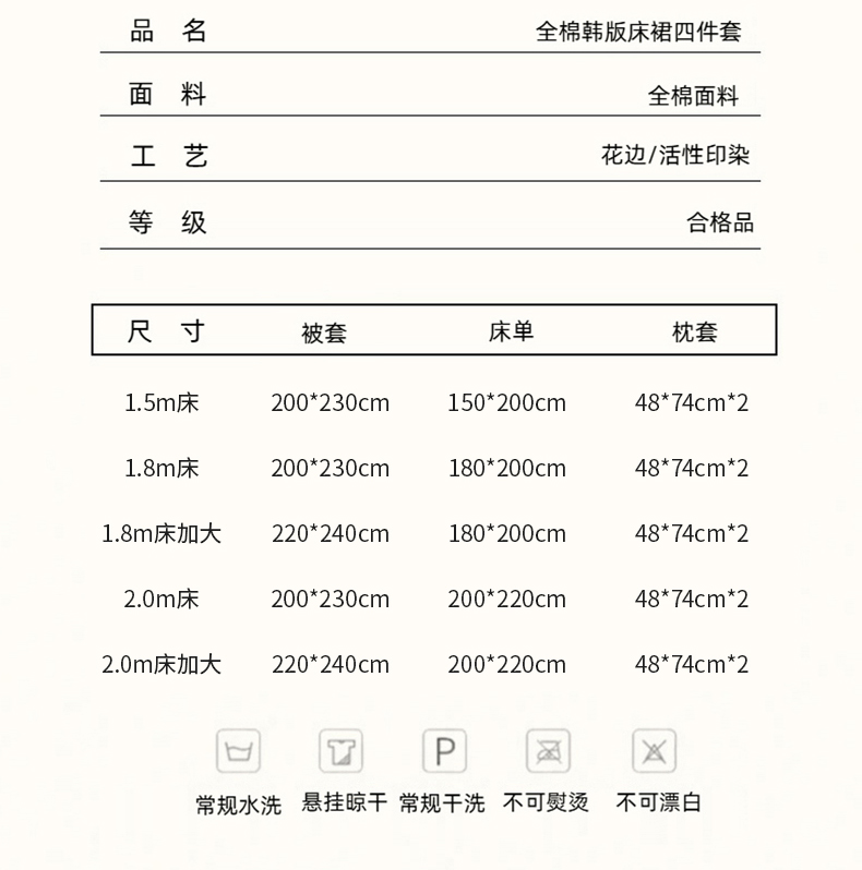 【床裙款】1.5四件套-被套200x230 | ¥178.00 |