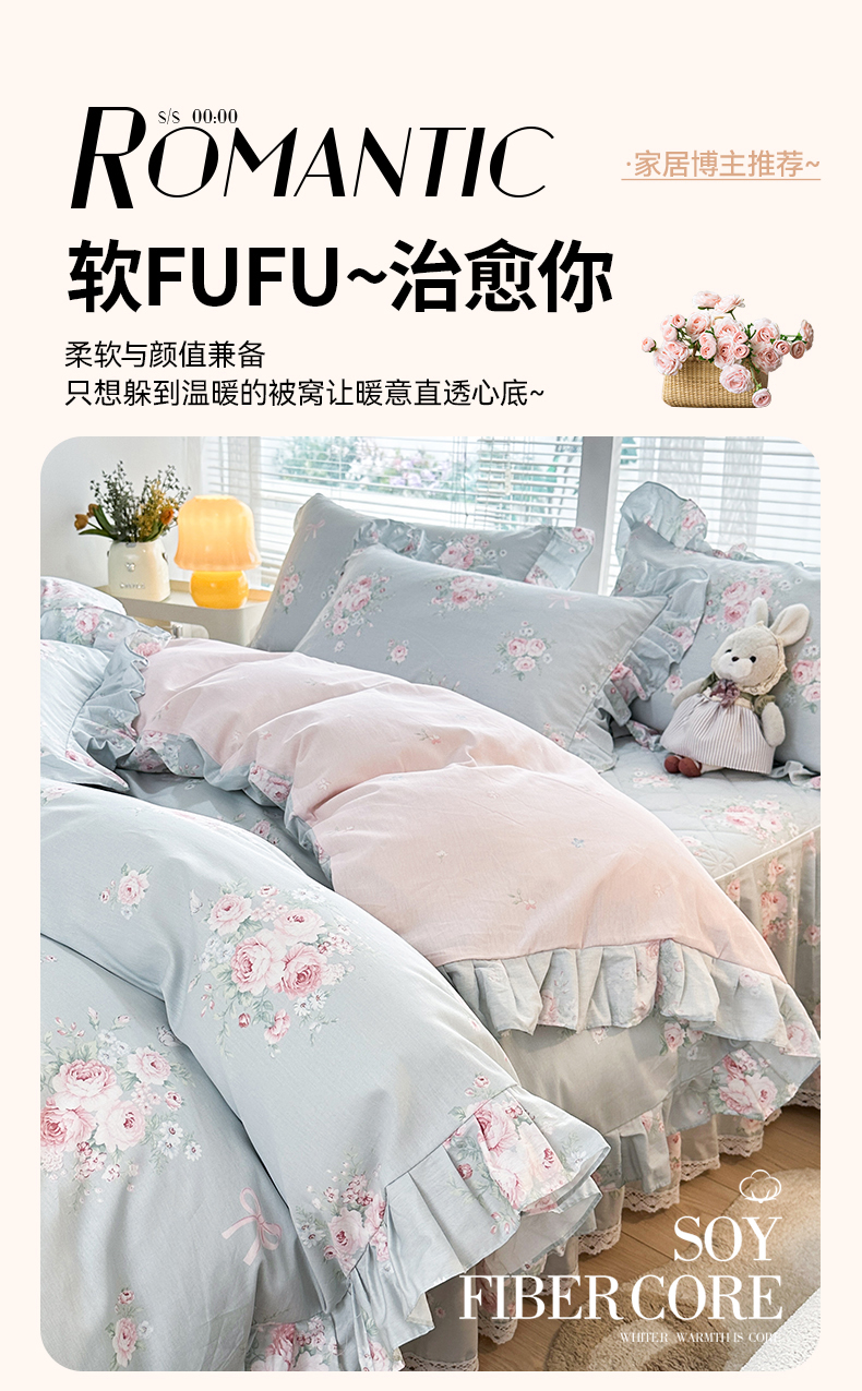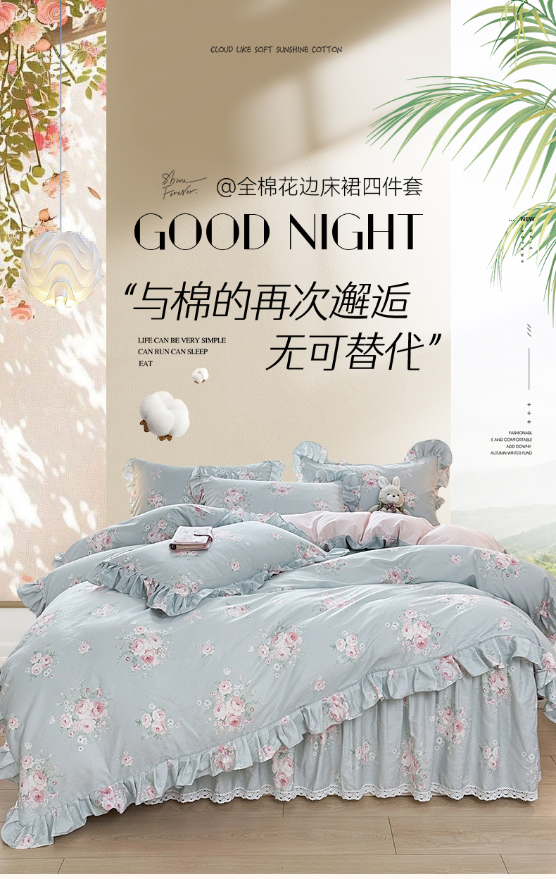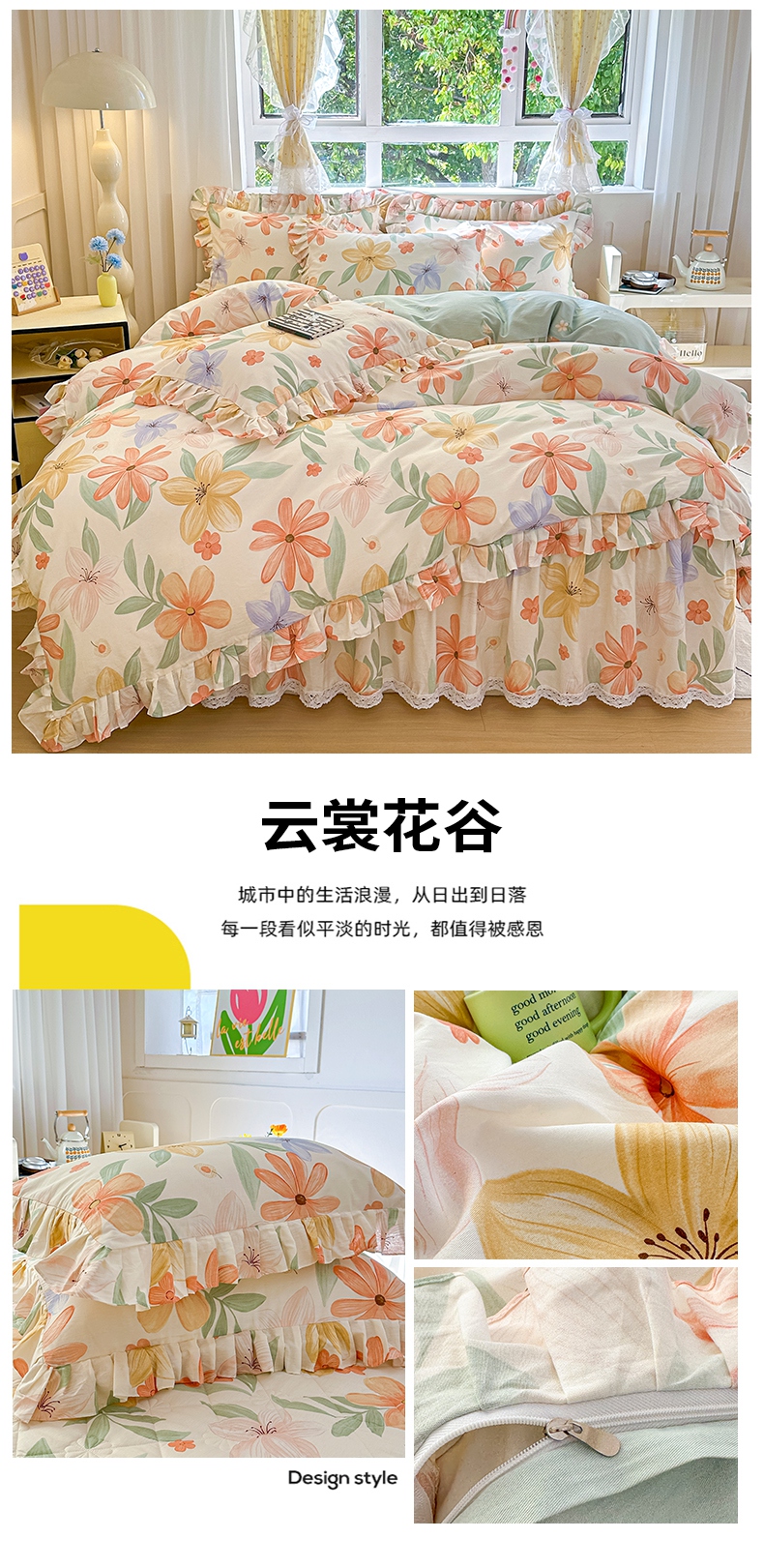 当前位置: 91家纺网 > 商品网购 > 床品套件 > 四件套 > 全棉普通四件套 > 忘忧草 2026新款全棉夹棉印花床裙四件套单被套 花疏影