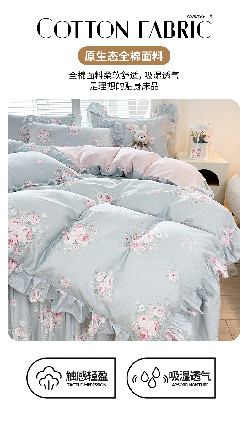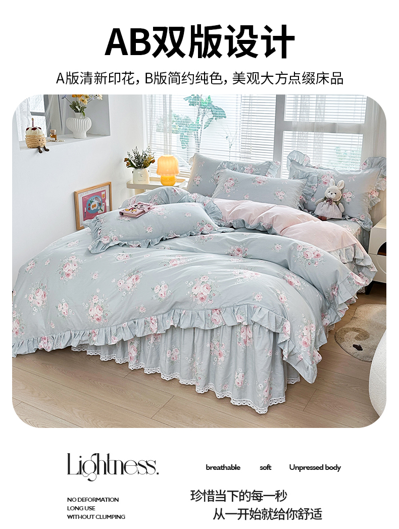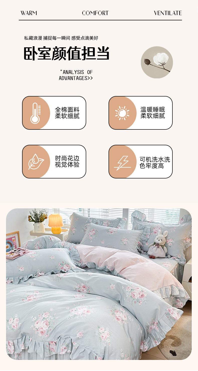 当前位置: 91家纺网 > 商品网购 > 床品套件 > 四件套 > 全棉普通四件套 > 忘忧草 2026新款全棉夹棉印花床裙四件套单被套 花疏影