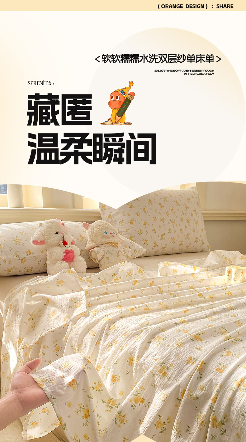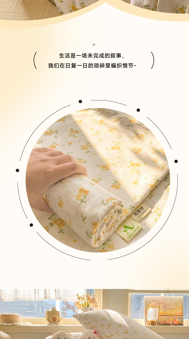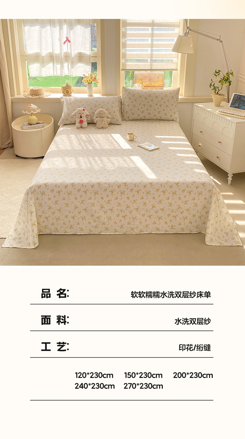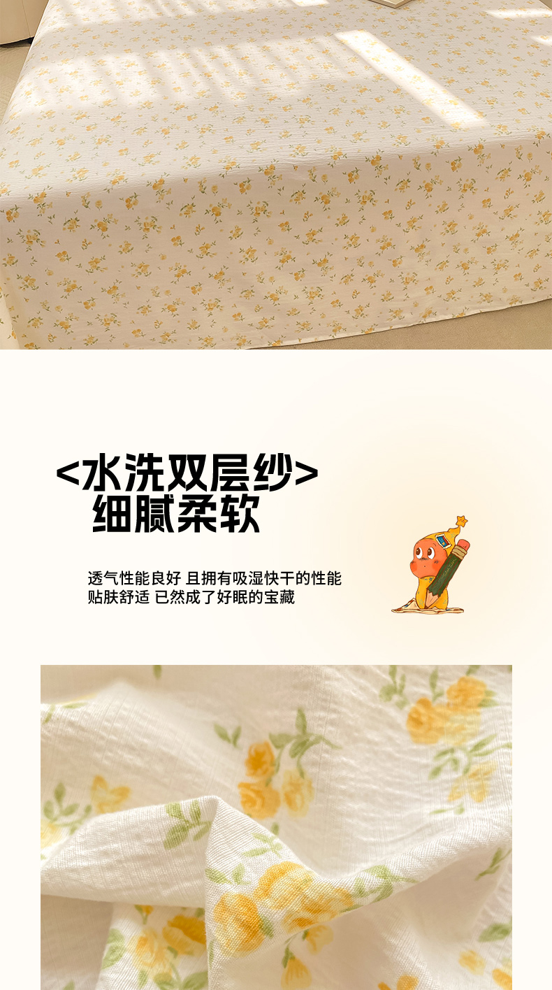 当前位置: 91家纺网 > 商品网购 > 床上用品 > 床单 > 晓时候 2026新款A类云感双层纱床单三件套单品单件床单 安然入夏