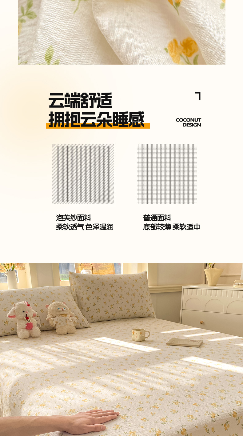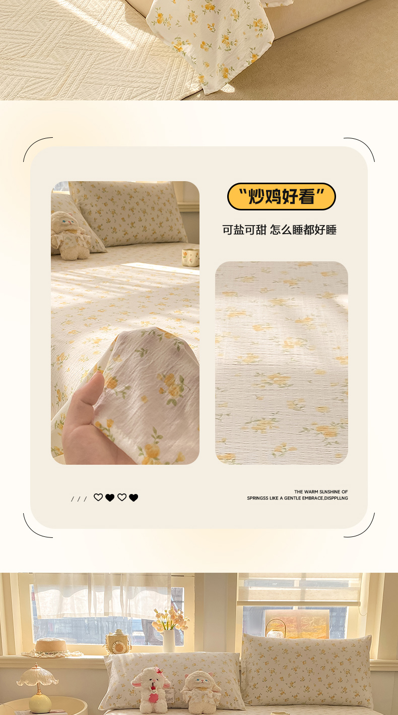 • 91家纺网 家纺一手货源 找家纺 晓时候 2026新款A类云感双层纱床单三件套单品单件床单 安然入夏