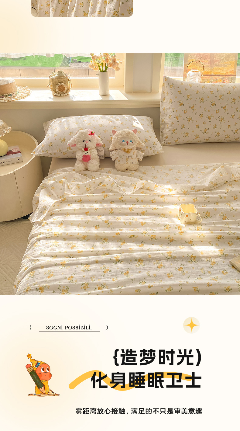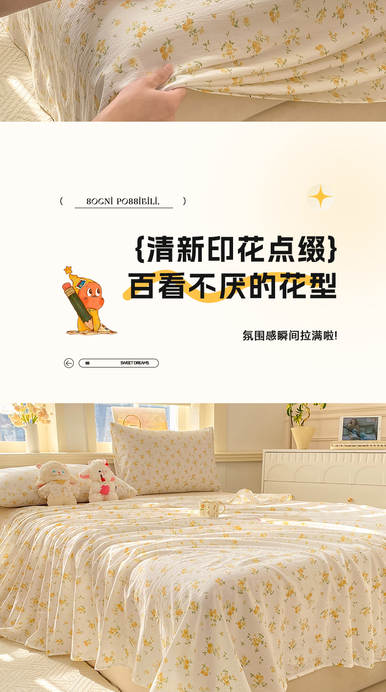 (总)晓时候 2026新款A类云感双层纱床单三件套单品单件床单,安然入夏,缤纷水果,冰川灰,豆蔻,多彩波点,繁花,蝴蝶结-紫,花间兔,蓝色泡芙狗,洛神花间,萌宠派对,萌萌星星人,奶芙狗,柠檬黄,芊芊花语,牵牛紫,俏皮狗,青春蓝,青竹绿,甜甜西高地,甜心女孩,小确幸,星星喵,樱花粉,云朵白