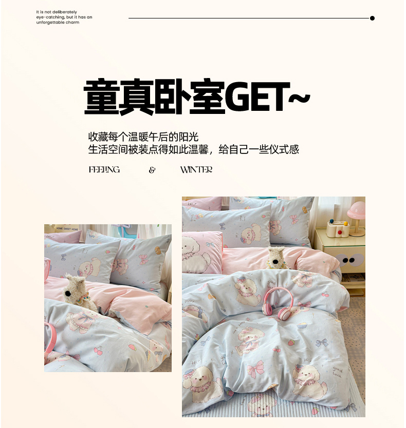 当前位置: 91家纺网 > 商品网购 > 床品套件 > 四件套 > 全棉普通四件套 > Sweet dreams甜梦 2026新款小清新卡通全棉纯棉印花床盖四件套 组合图仅做展示不可下单