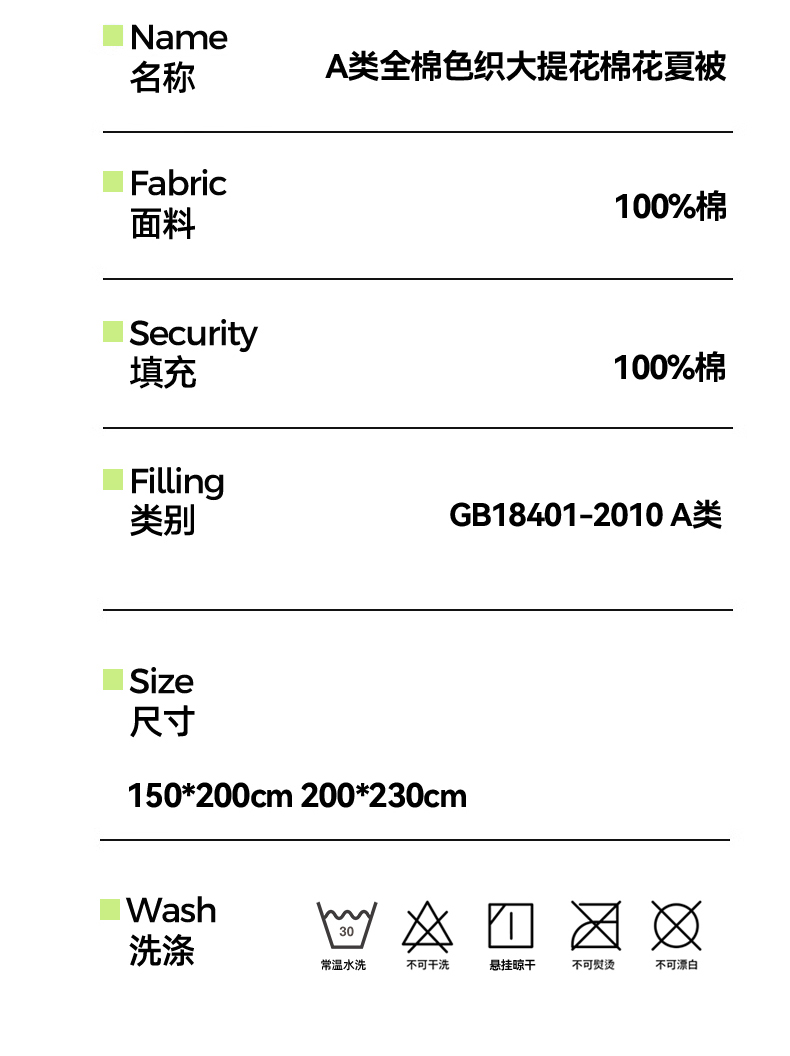 • 适用季节: 空调被/夏凉被