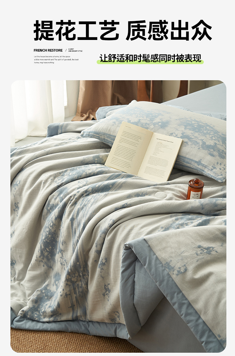 • 91家纺网 家纺一手货源 找家纺 恬思语家纺 2026春夏新款A类全棉色织大提花棉花夏凉被空调被夏被 墨凡-蓝
