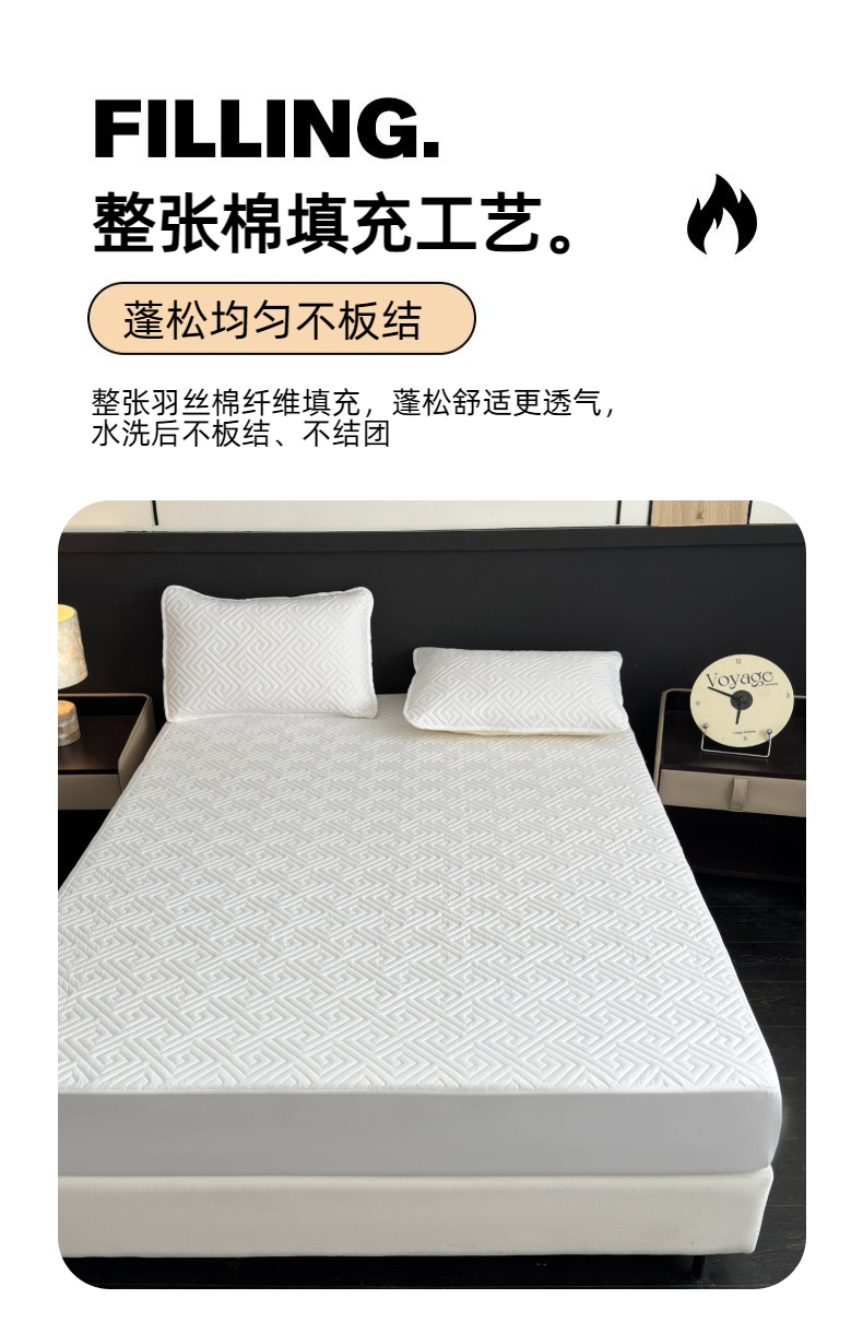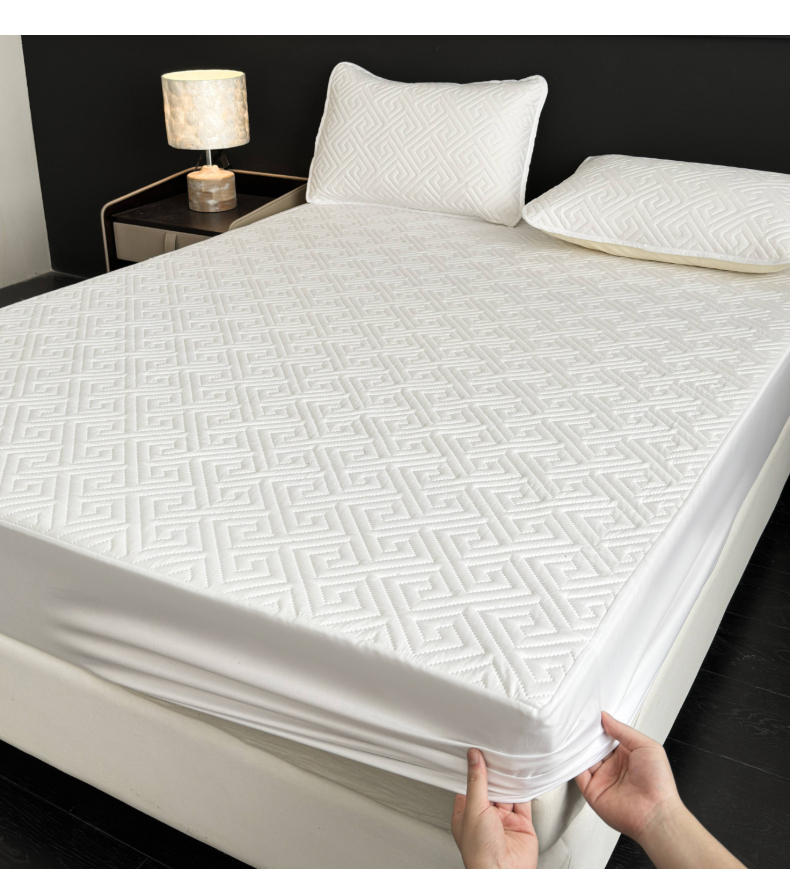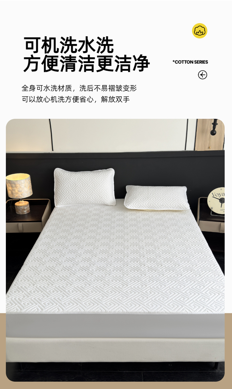 慕克斯家纺 2026新款防水回字格床笠-慕克斯 浅灰