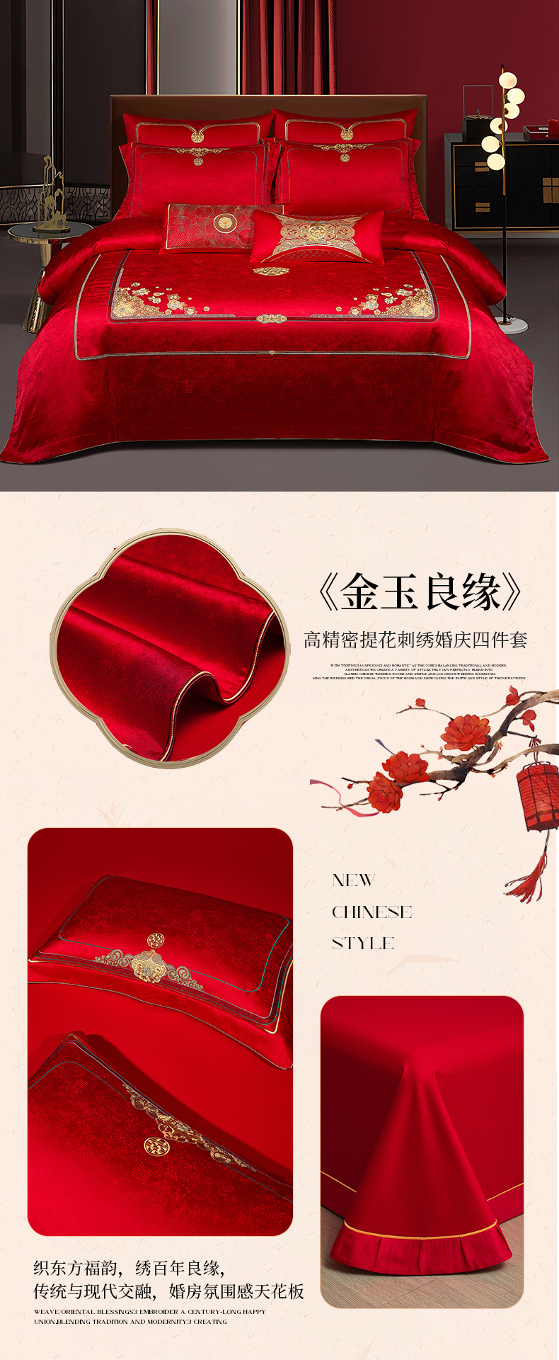 婚庆四件套高精密提花加刺绣结婚喜庆直播爆款【控价不低于580】 金玉良缘